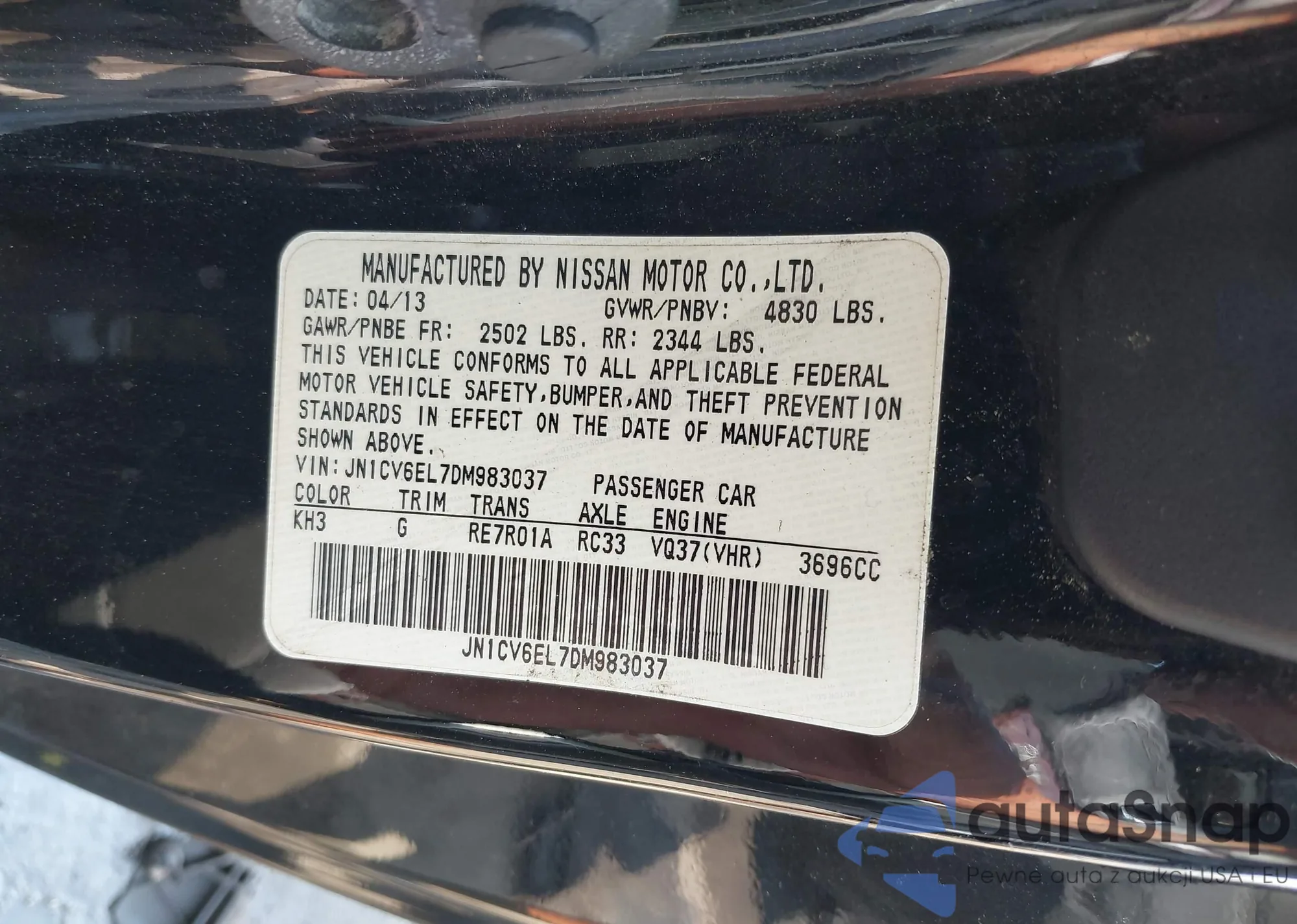 LOT: 42776928 VIN: JN1CV6EL7DM983037