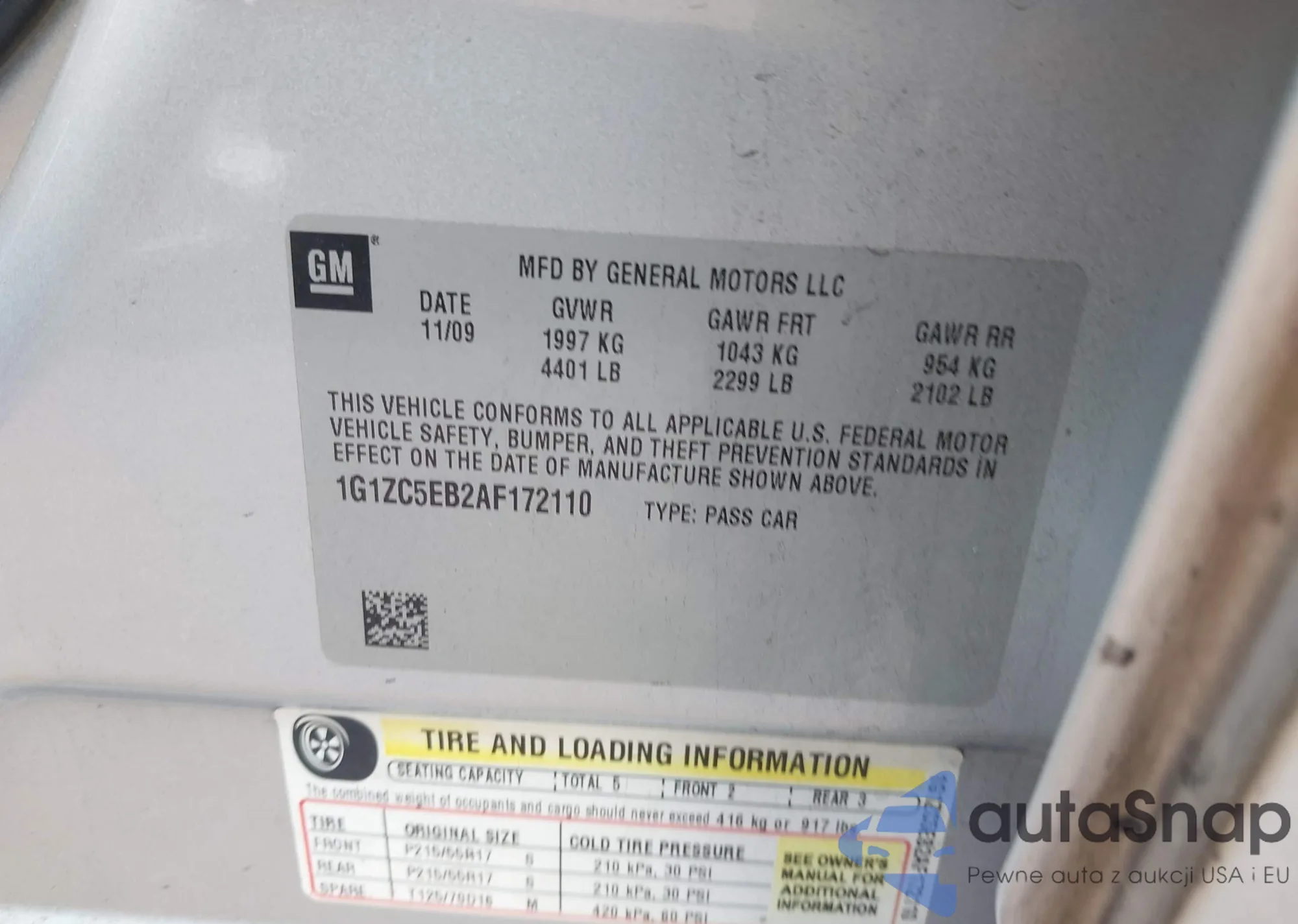 • VIN 1G1ZC5EB2AF172110