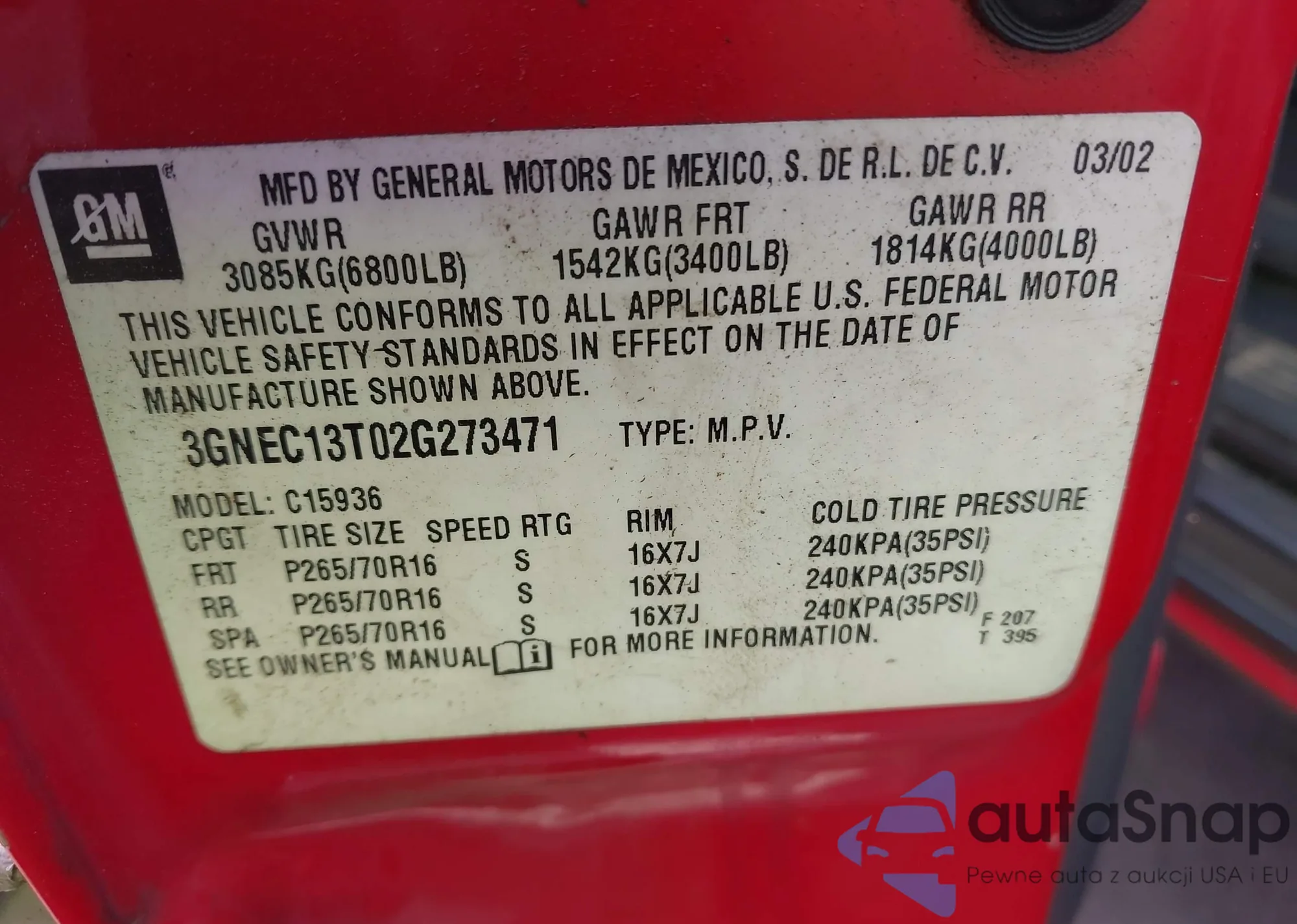 • VIN 3GNEC13T02G273471