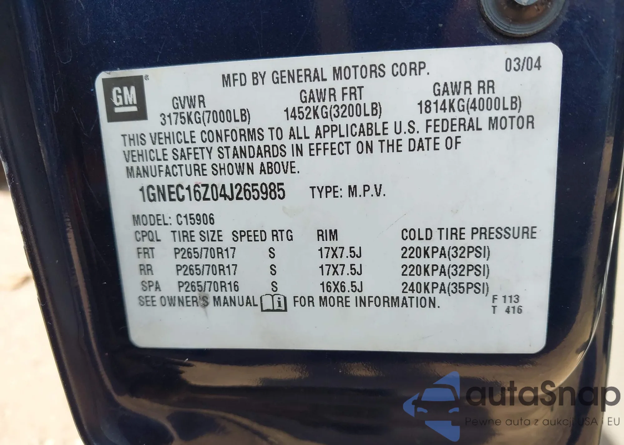 • VIN 1GNEC16Z04J265985
