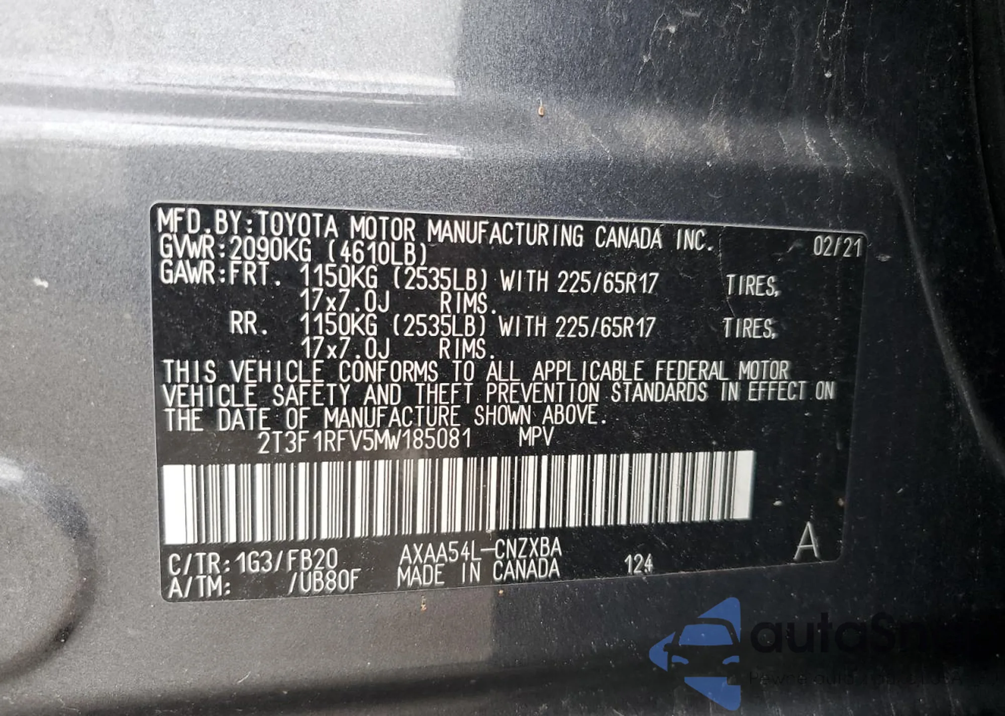 LOT: 67460955 VIN: 2T3F1RFV5MW185081