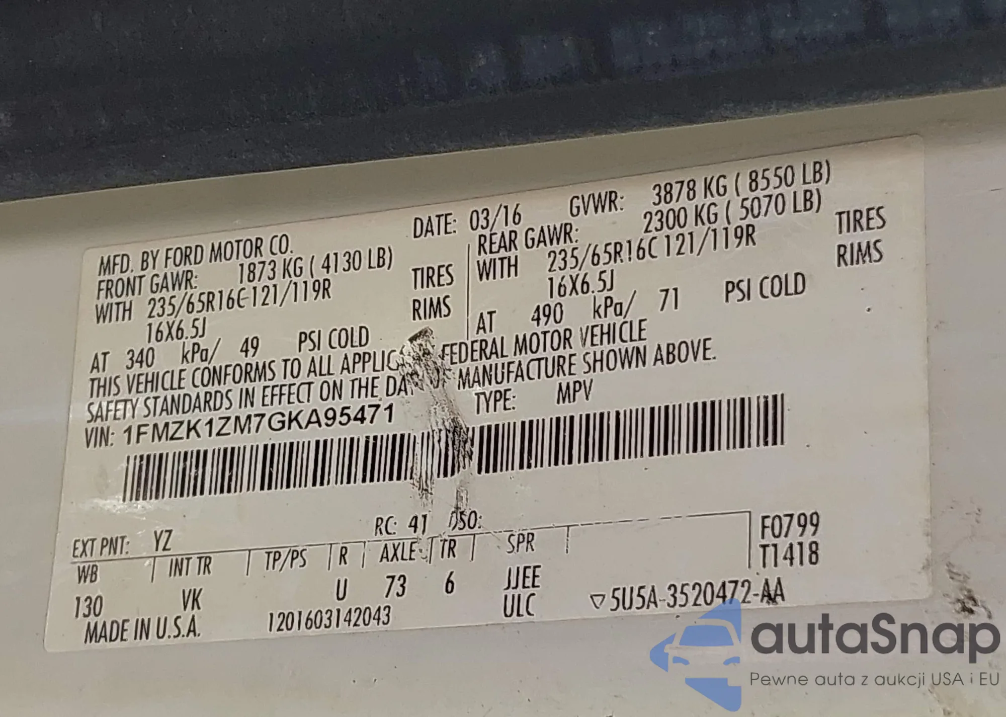 • VIN 1FMZK1ZM7GKA95471