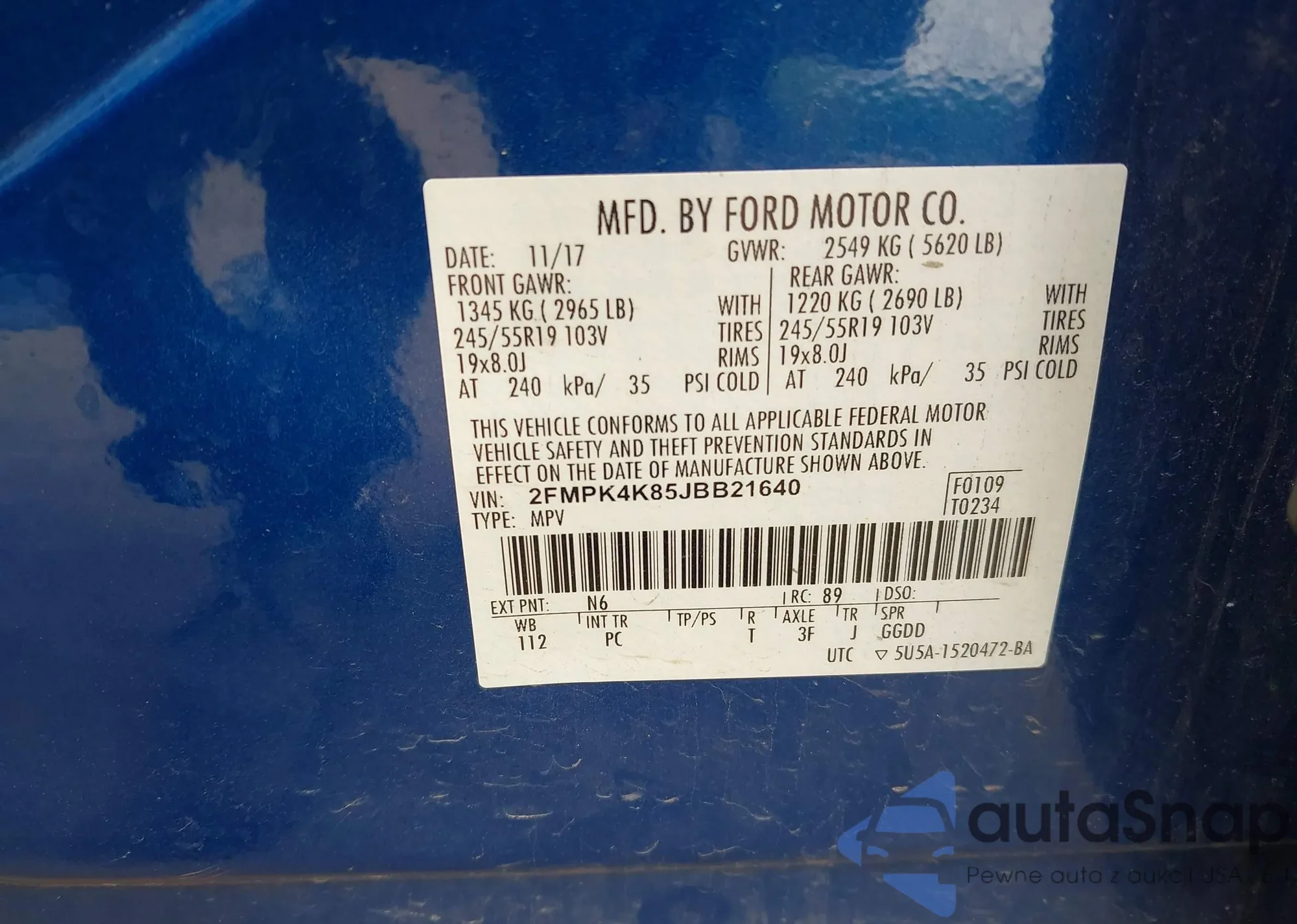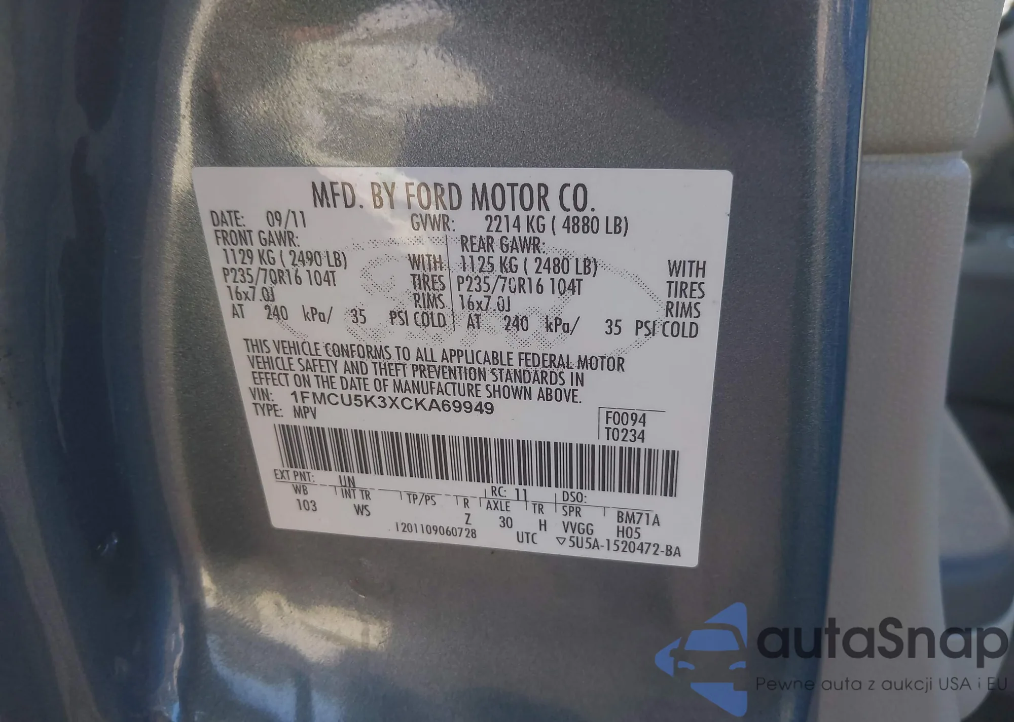 • VIN 2FMPK4K95NBA67240