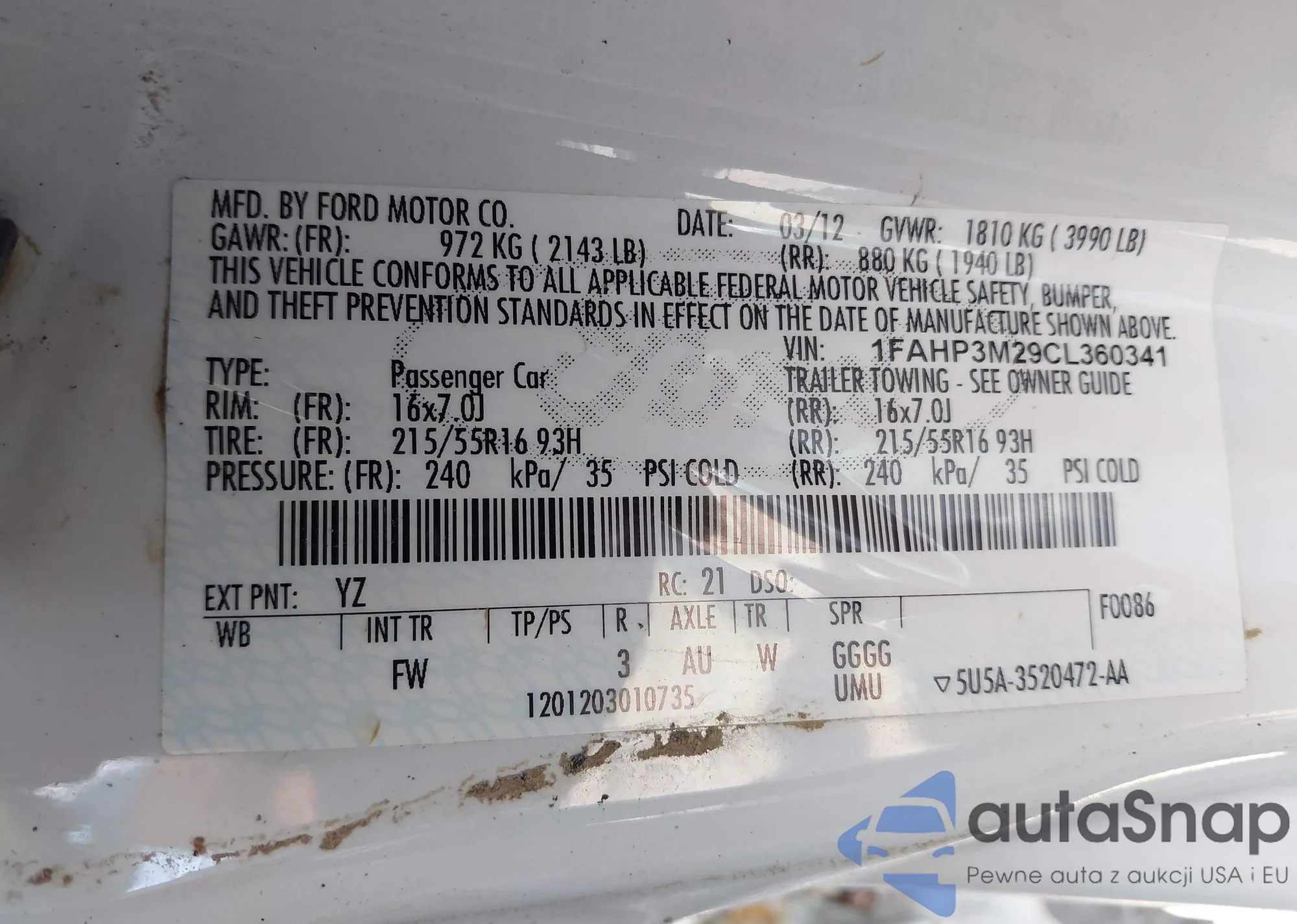 • VIN 1FMEU6DE6AUA34131