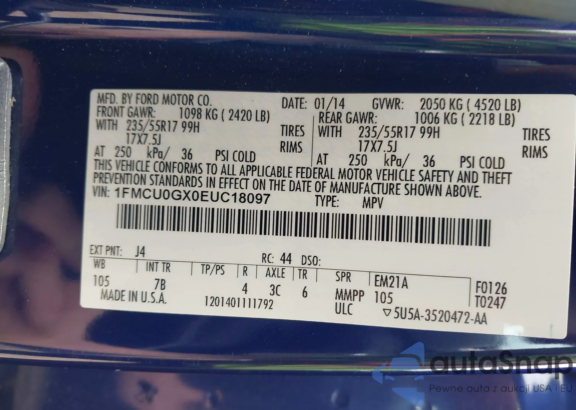 LOT: 42372846 VIN: 1FMCU0GX0EUC18097