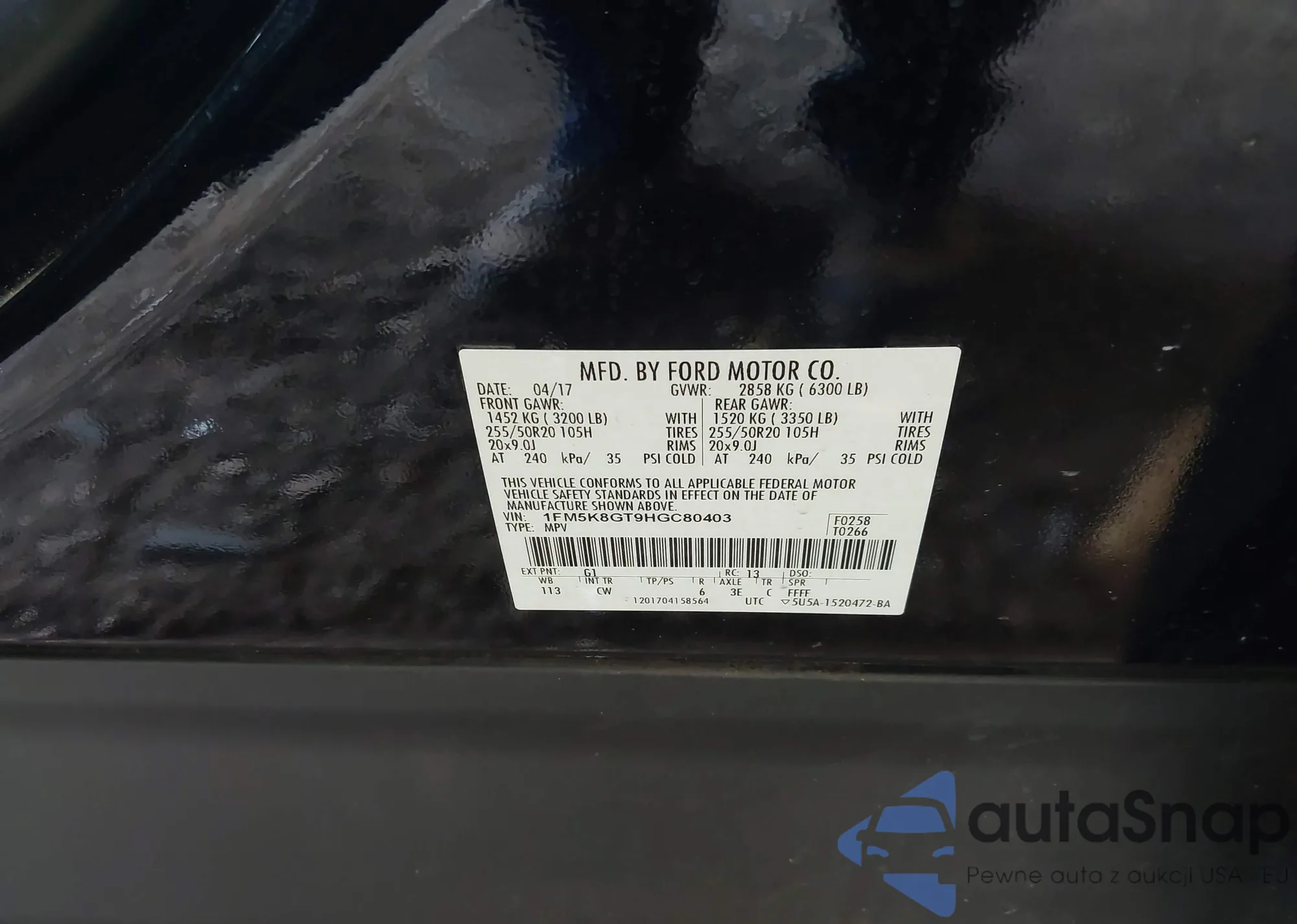 • VIN 1FM5K8GT9HGC80403