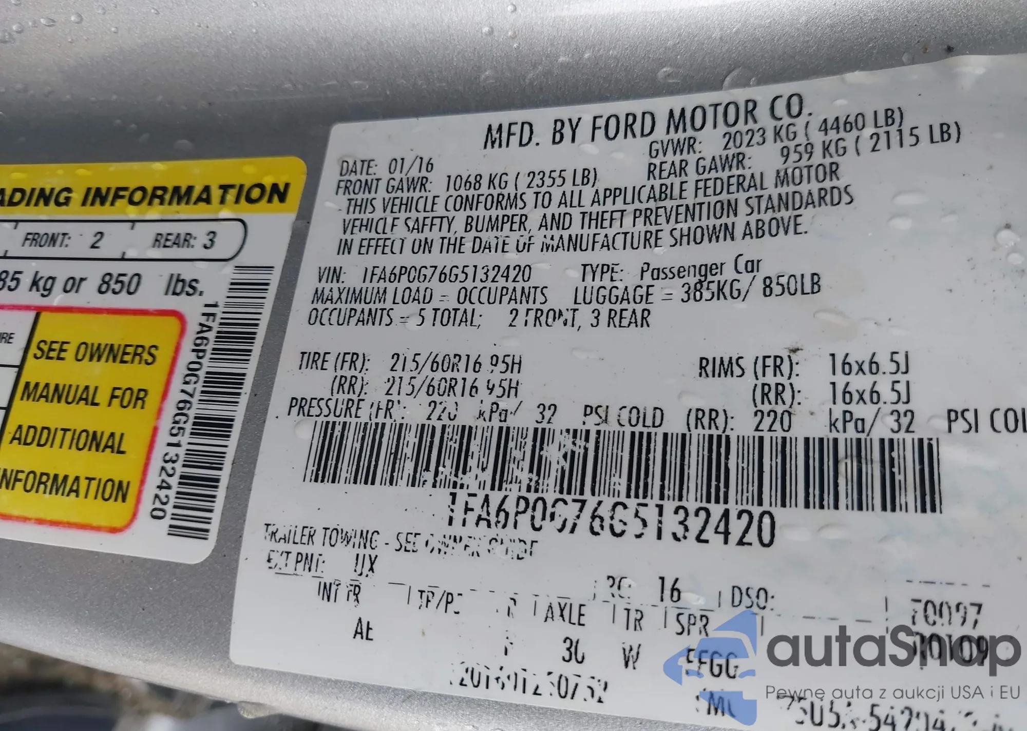 • VIN 1FA6P0G76G5132420