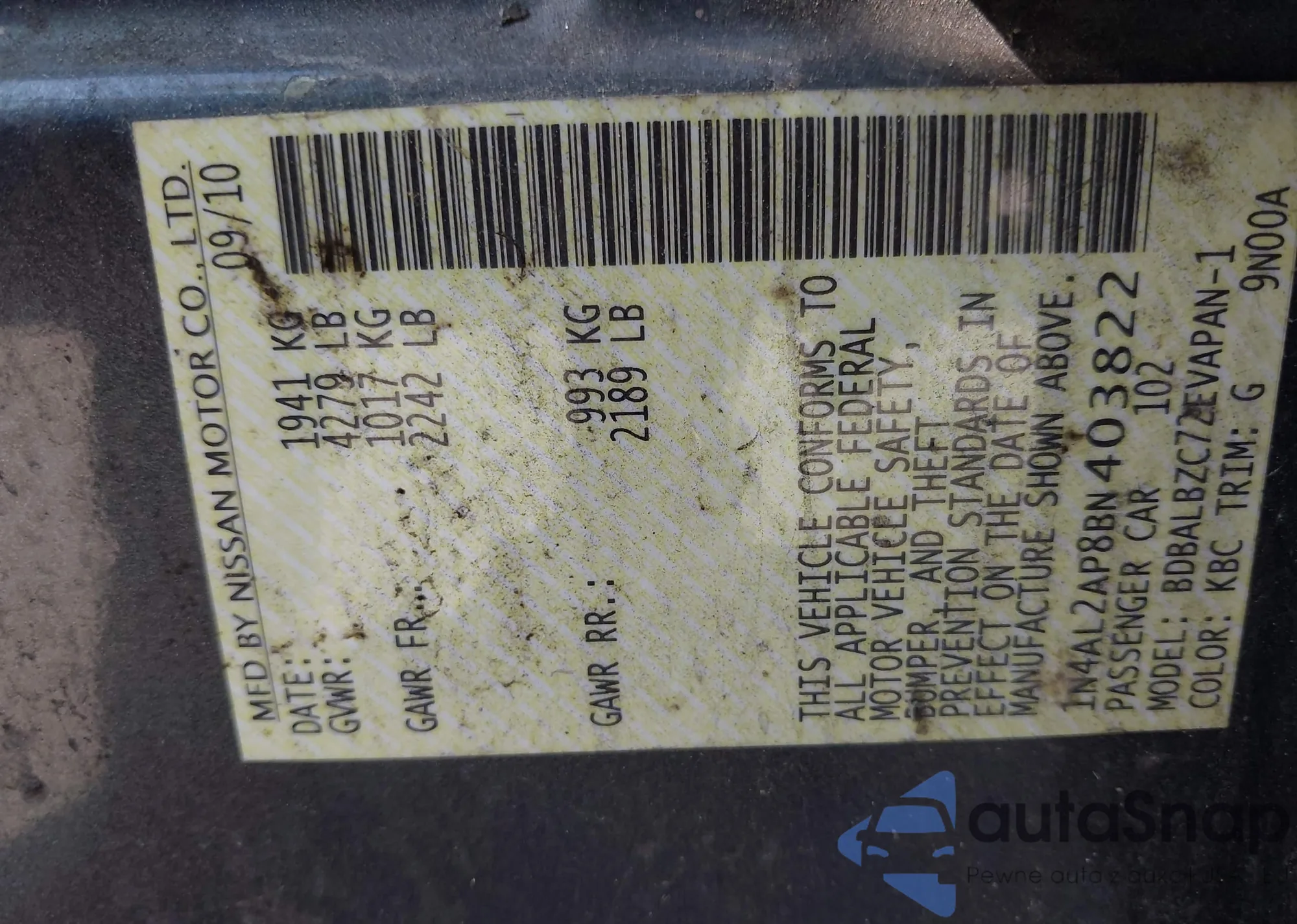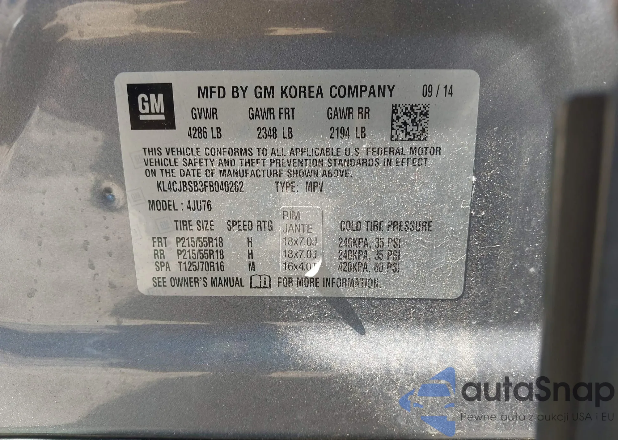 LOT: 43023804 VIN: KL4CJBSB3FB040262