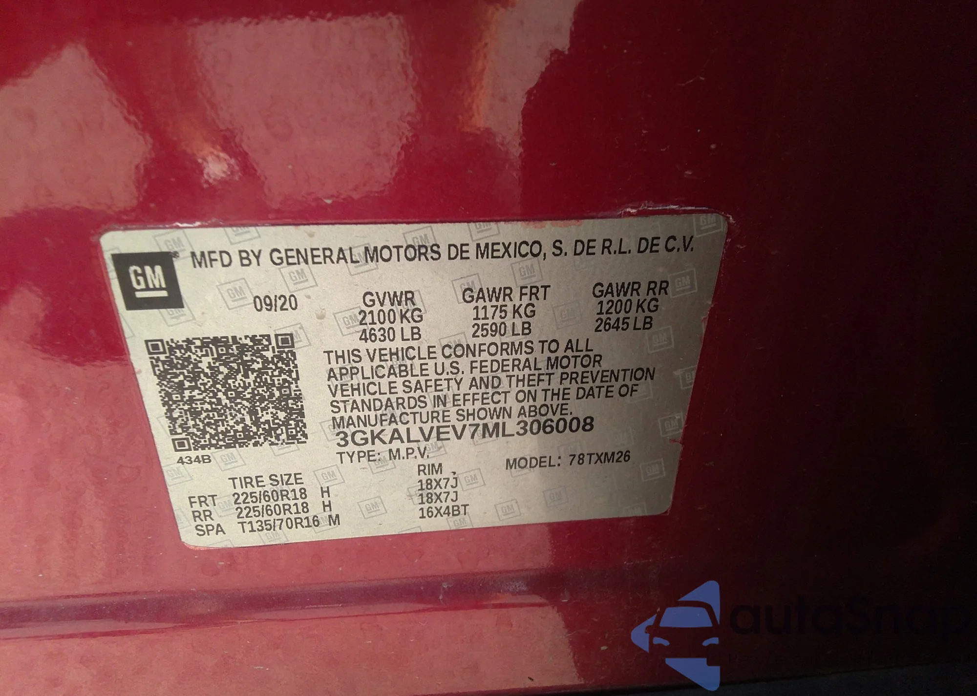 • VIN 3GKALVEV7ML306008