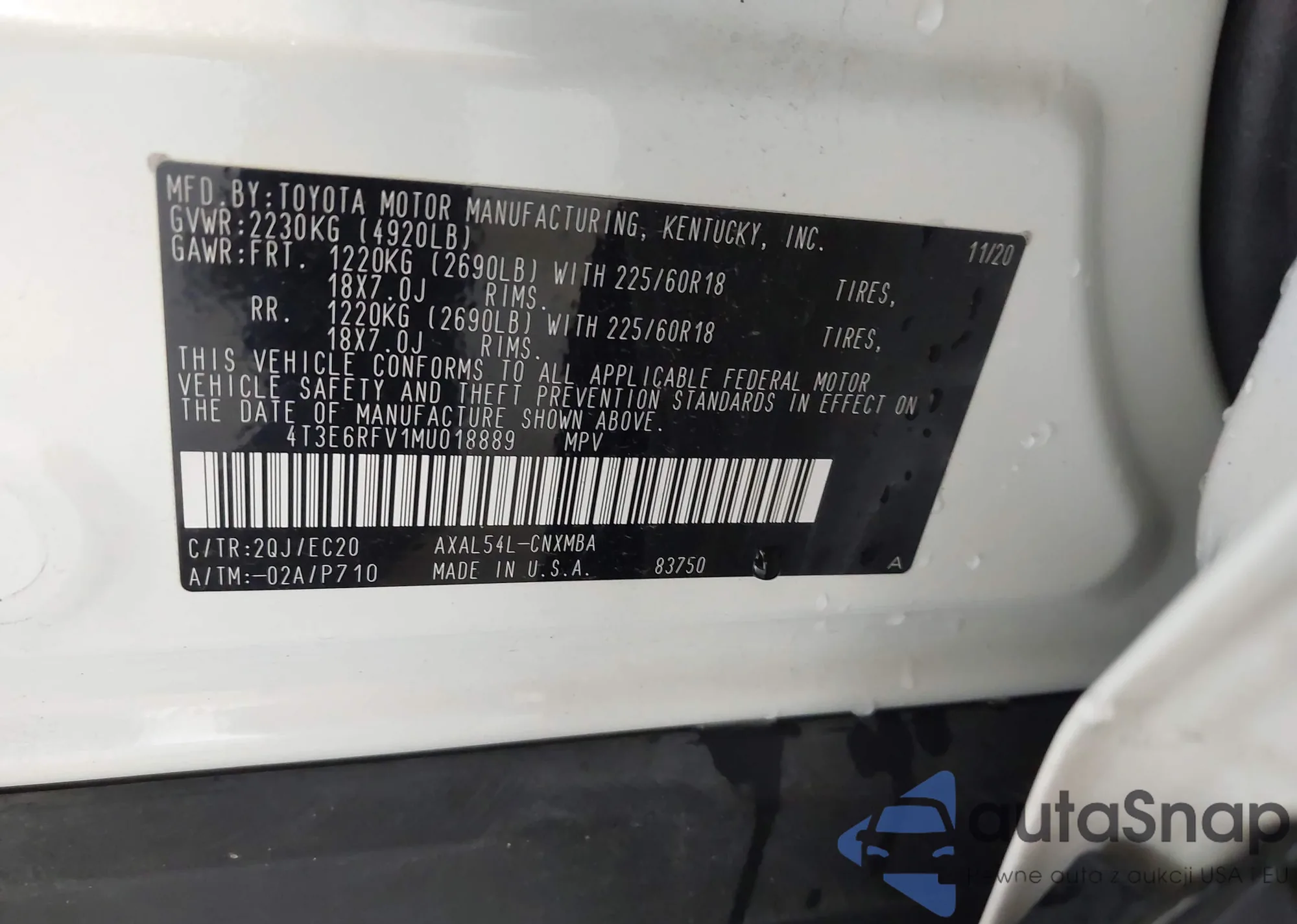 LOT: 42696865 VIN: 2T3H1RFV4RC303283