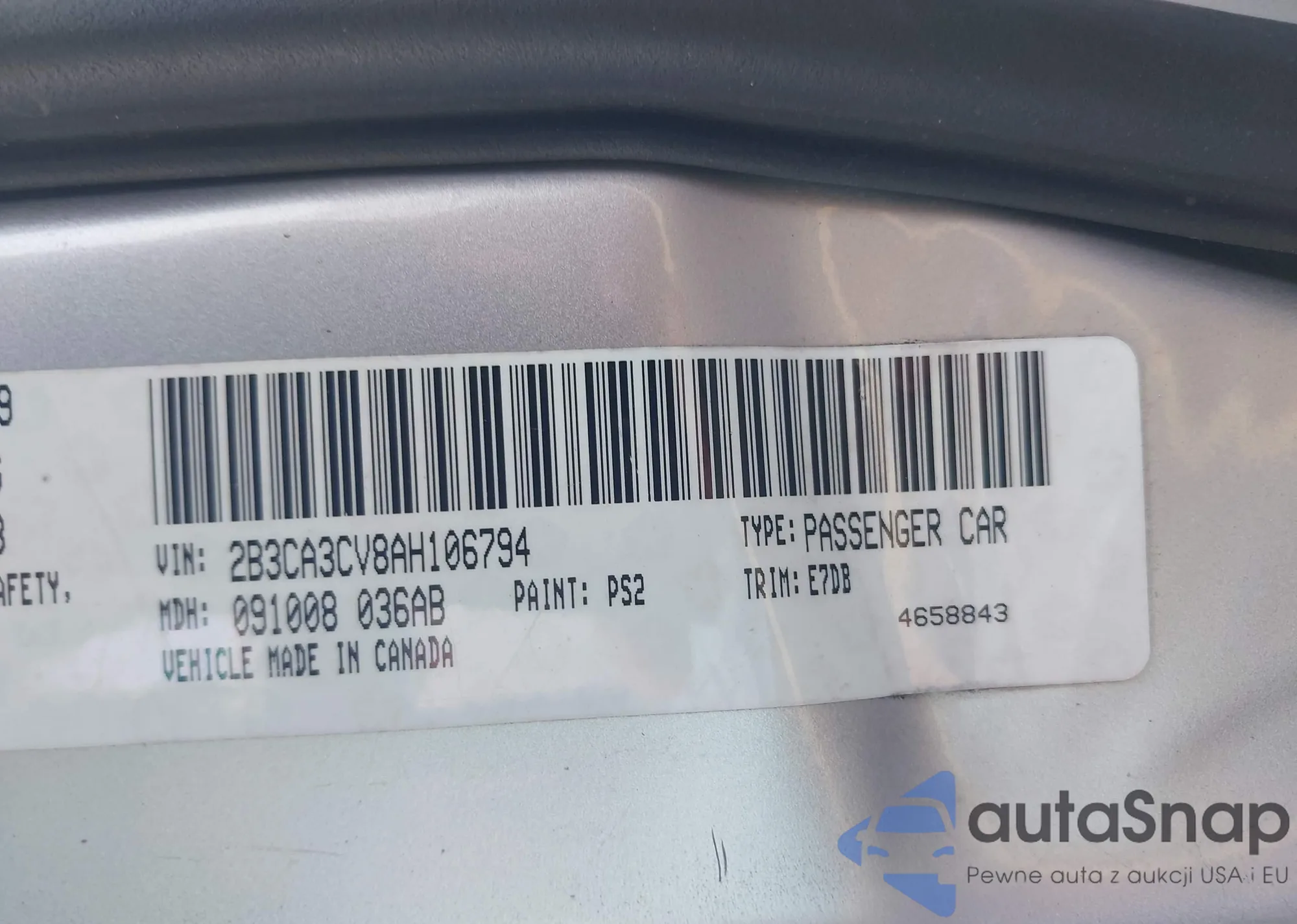 • VIN 2B3CA3CV8AH106794