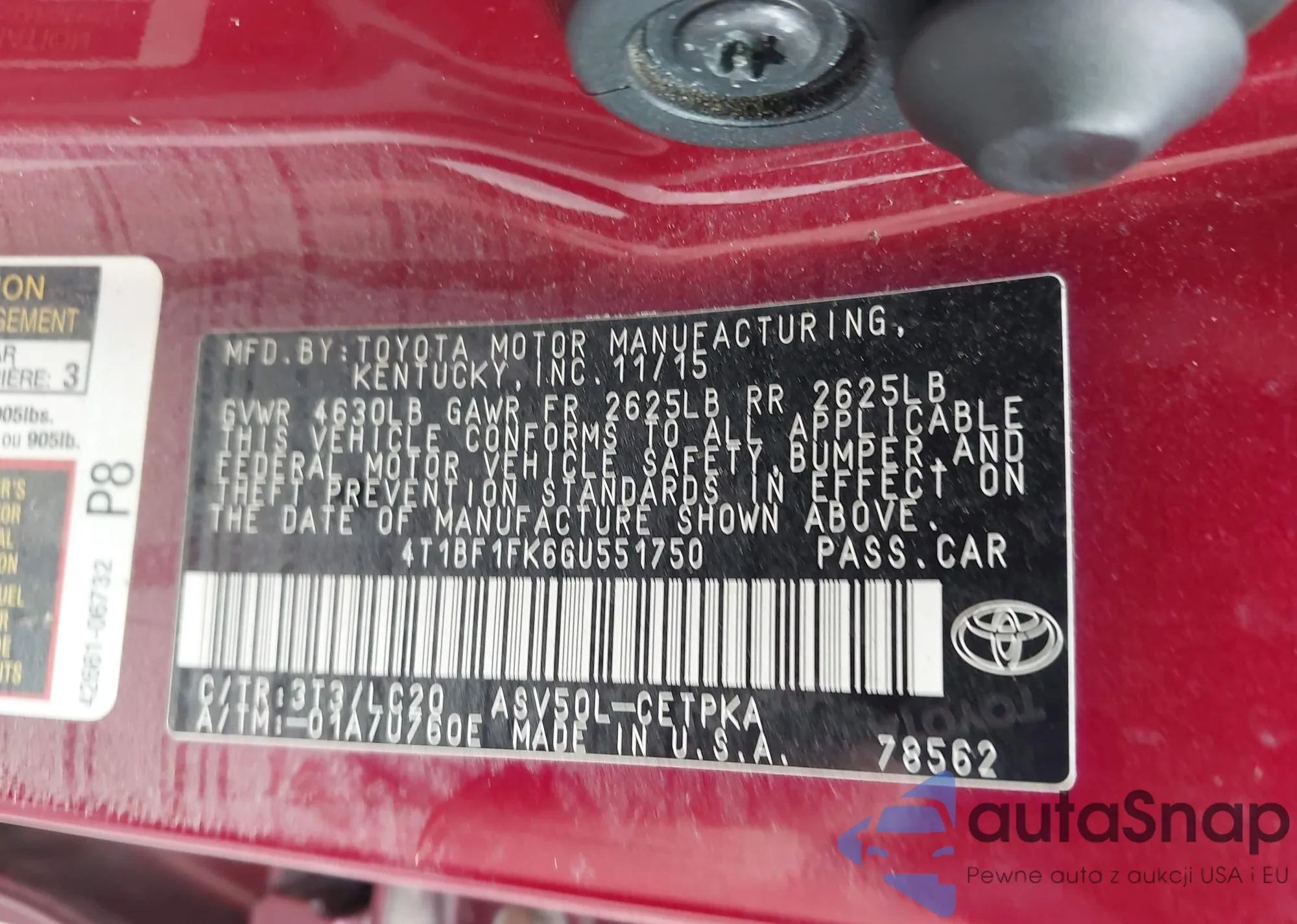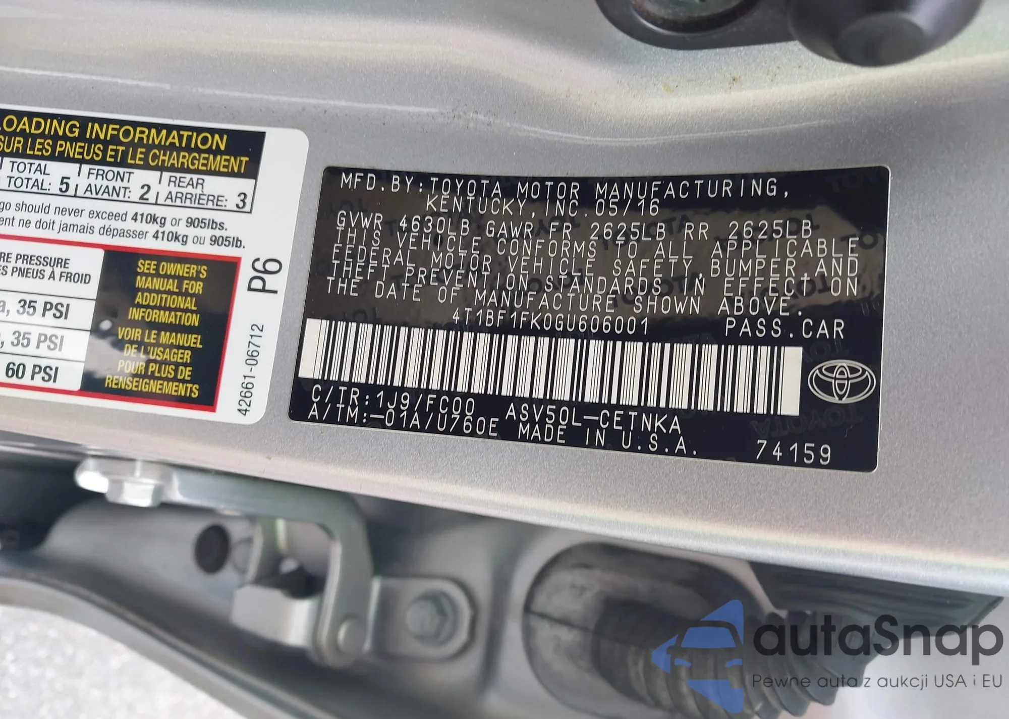 • VIN 4T1BF1FK0GU606001