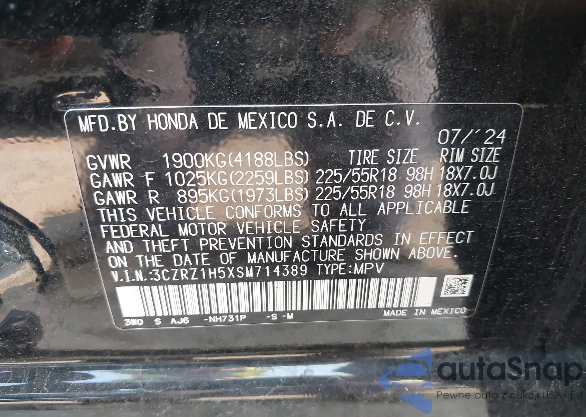 • VIN 3CZRZ1H5XSM714389