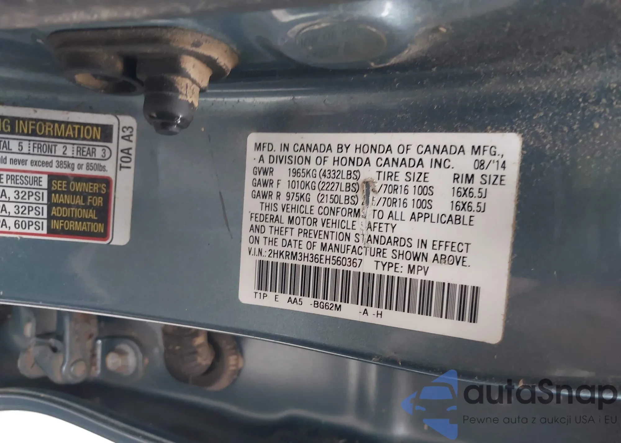 • VIN 2HKRM3H36EH560367
