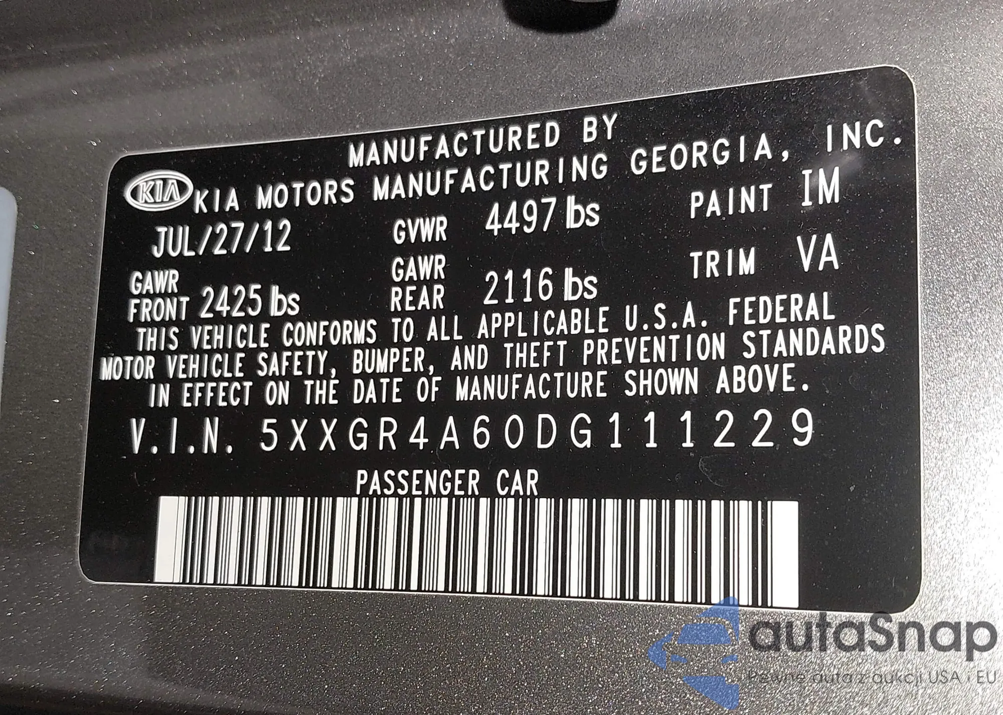 • VIN 5XXGR4A60DG111229