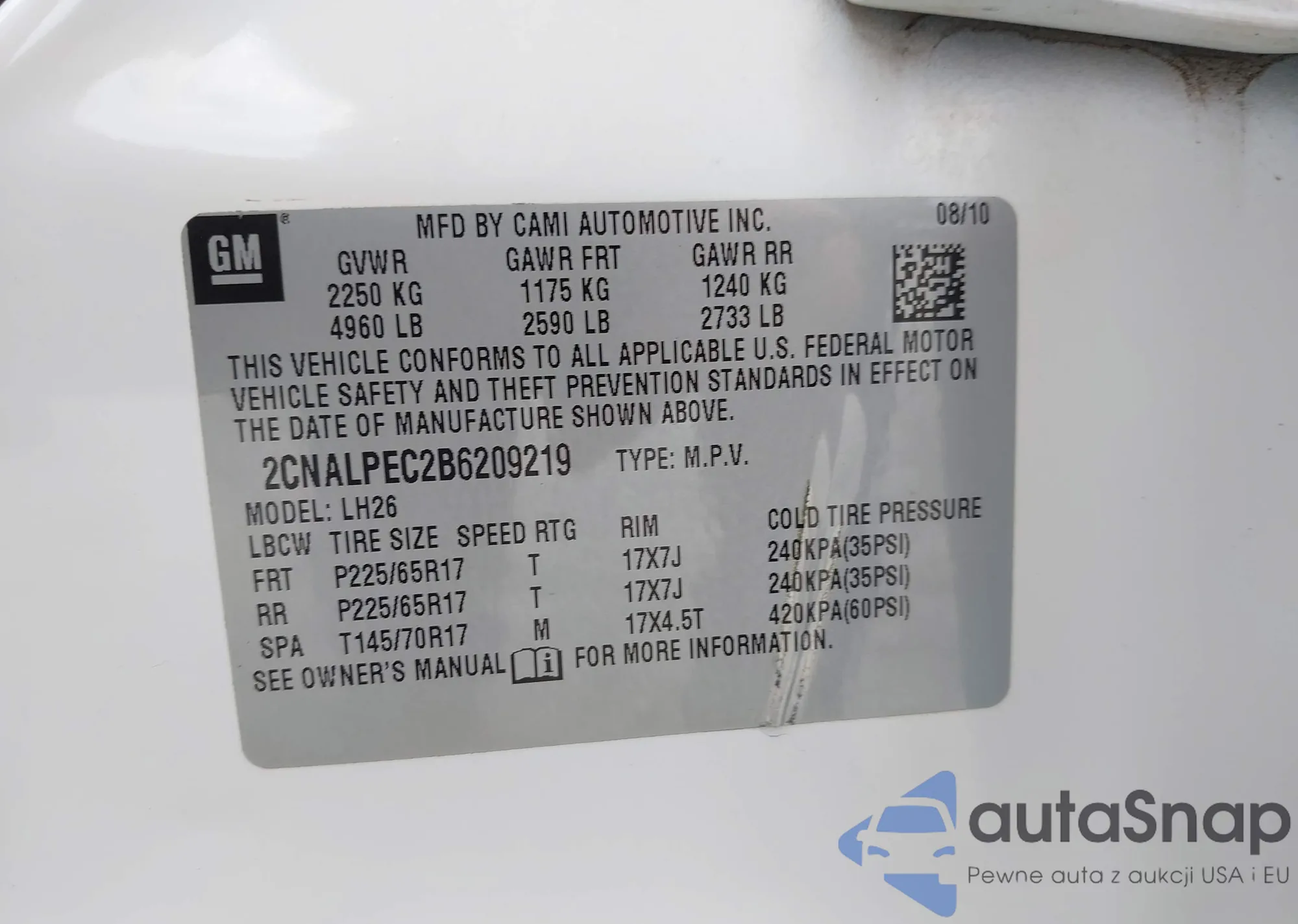 • VIN WBAPH7G58ANM51583