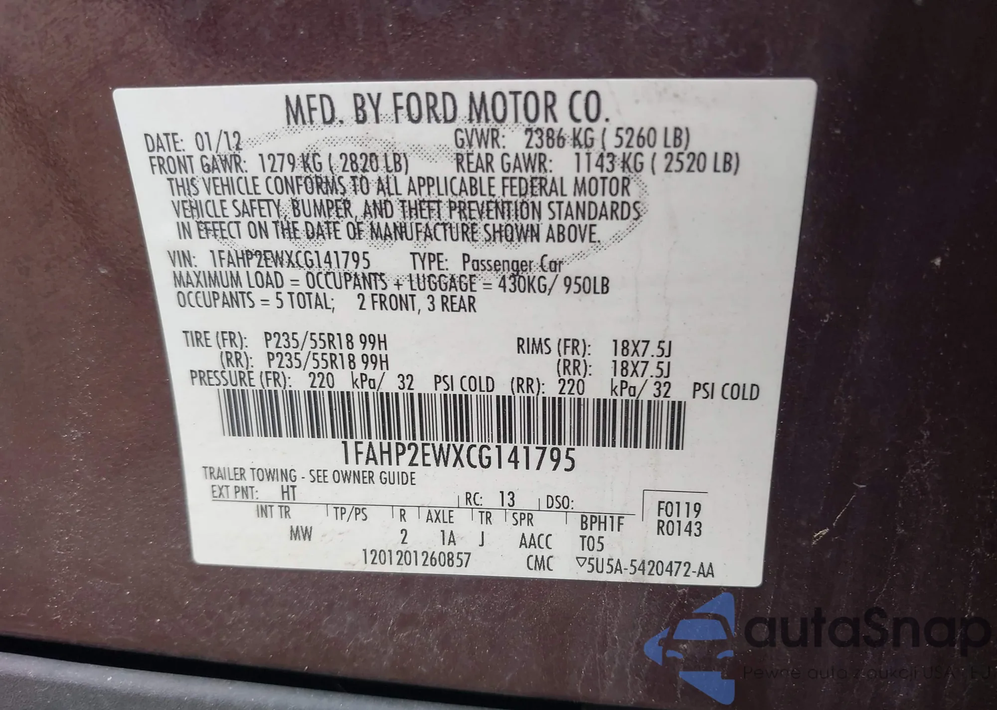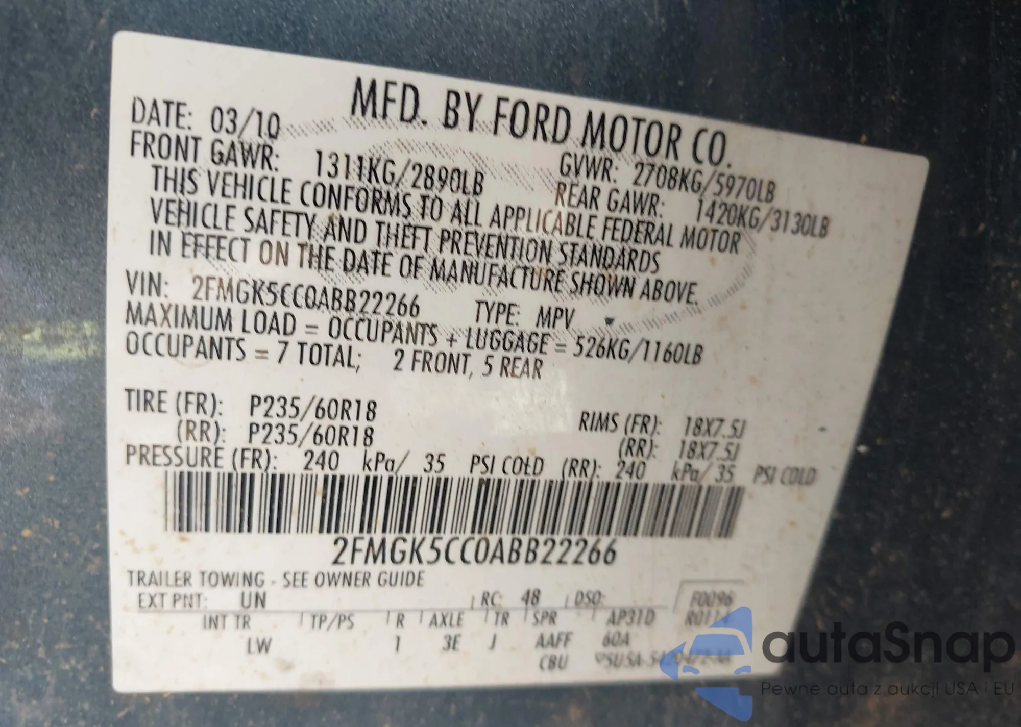 • VIN 2FMGK5CC0ABB22266