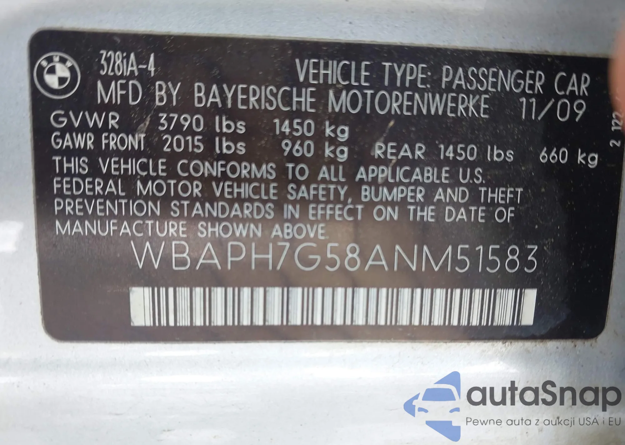 LOT: 42753304 VIN: WBAPH7G58ANM51583