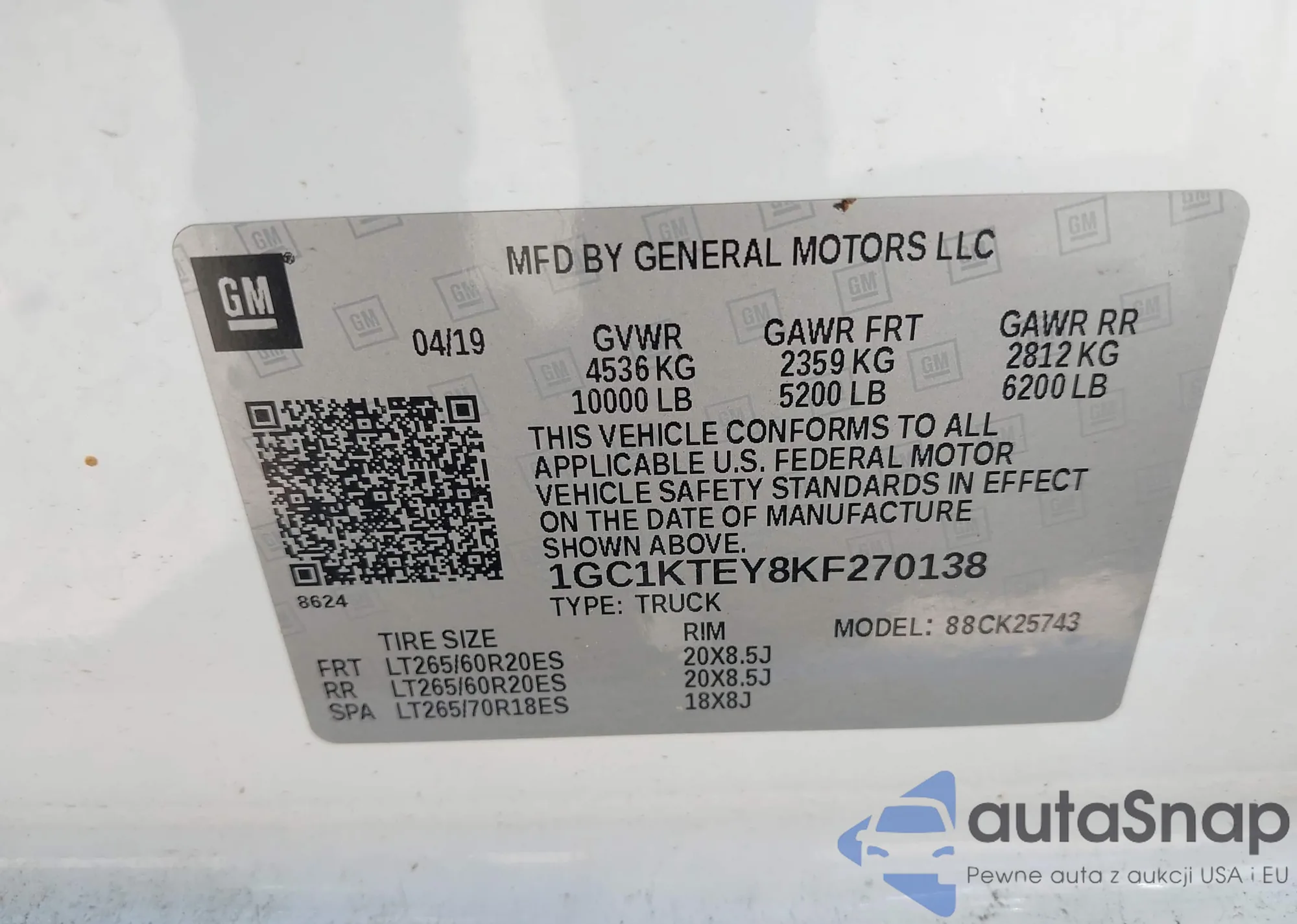 LOT: 42129771 VIN: 1GC1KTEY8KF270138