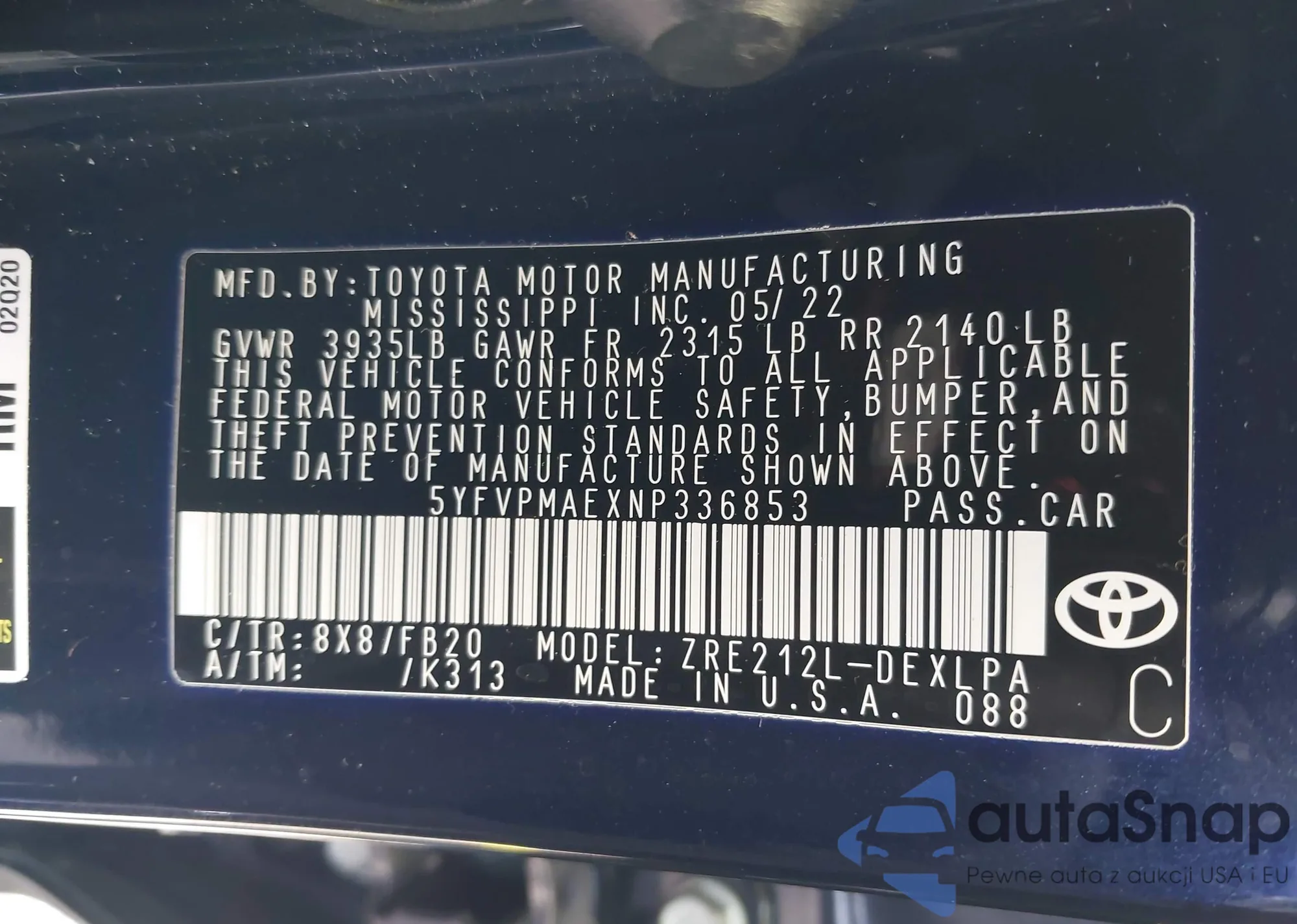 • VIN JTDJT923475063350