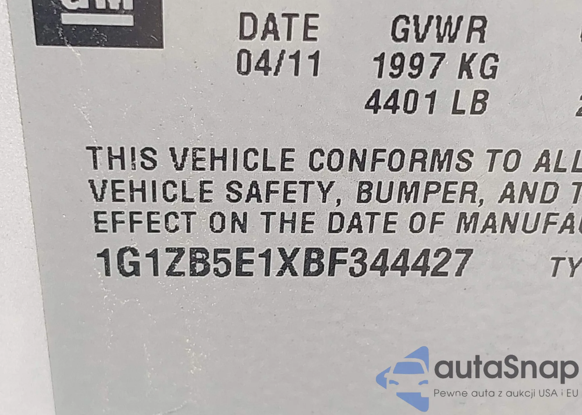 • VIN 1G1ZB5E1XBF344427
