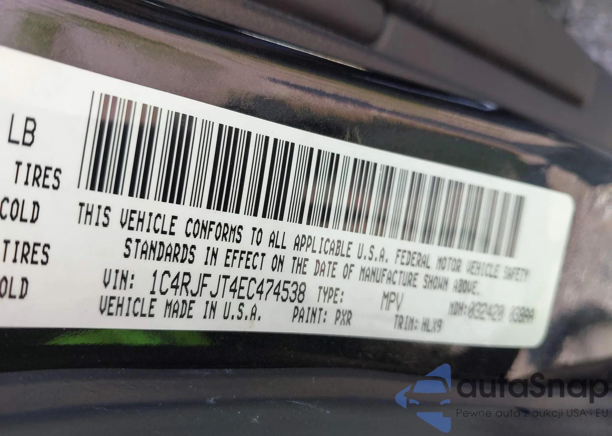 • VIN 1C4RJFJT4EC474538