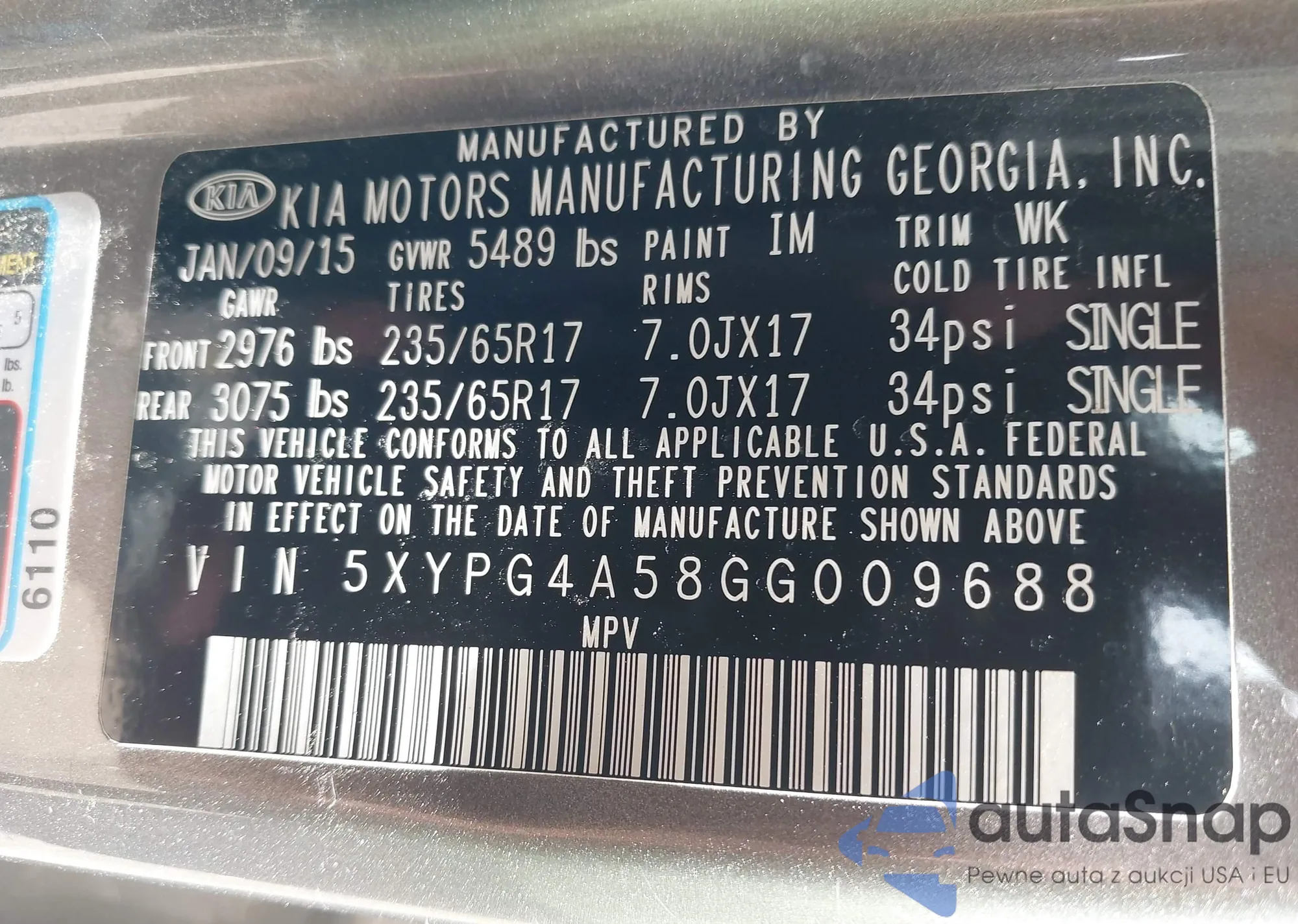 2016 Kia Sorento 3.3L Lx from USA, damaged, VIN 5XYPG4A58GG009688
