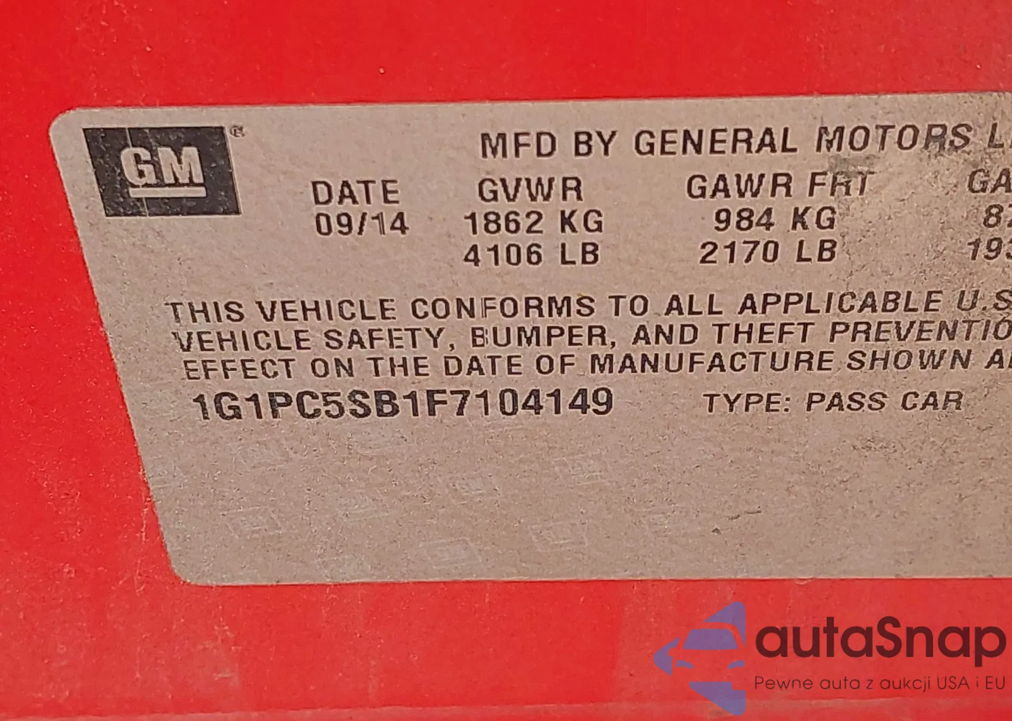 LOT: 42992934 VIN: 1G1PC5SB1F7104149