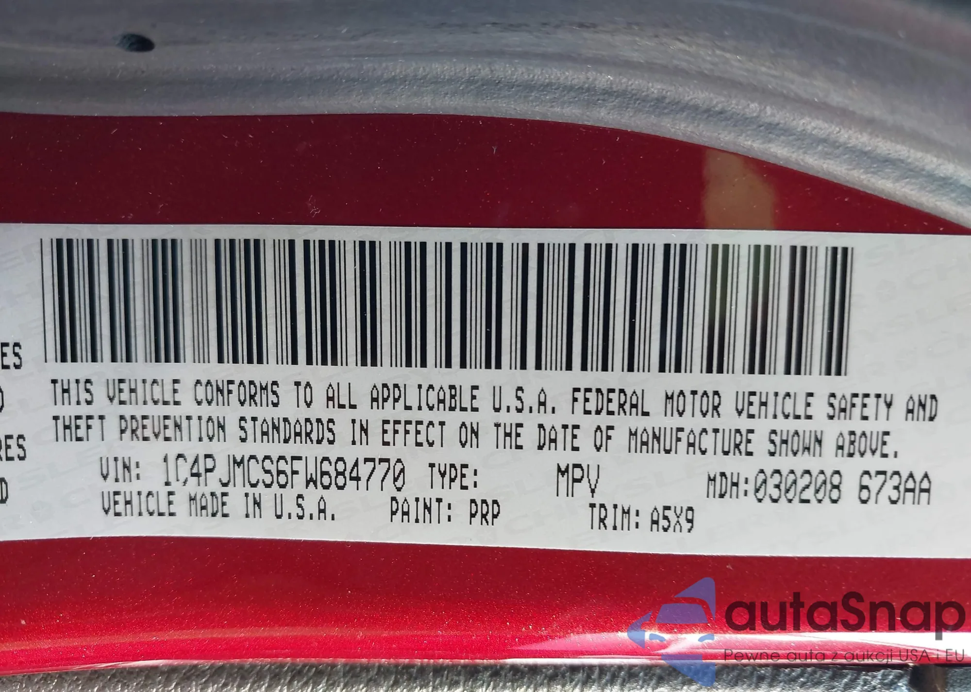 LOT: 43014576 VIN: 1C4PJMCS6FW684770