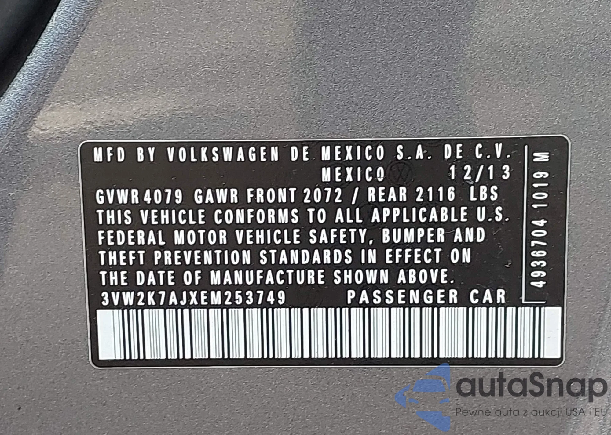 • VIN 3VW2K7AJXEM253749