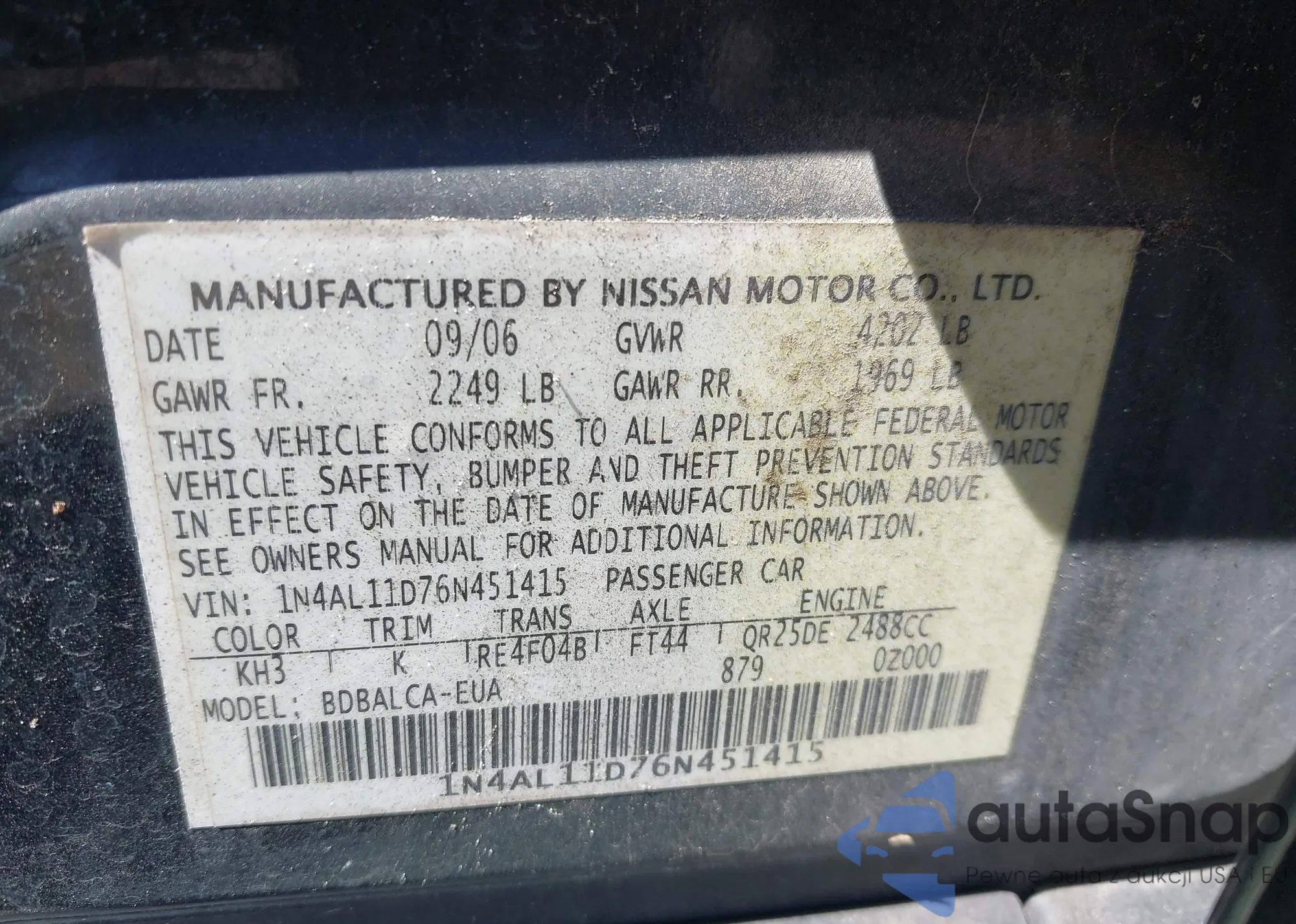• VIN 7FARW1H26ME007225