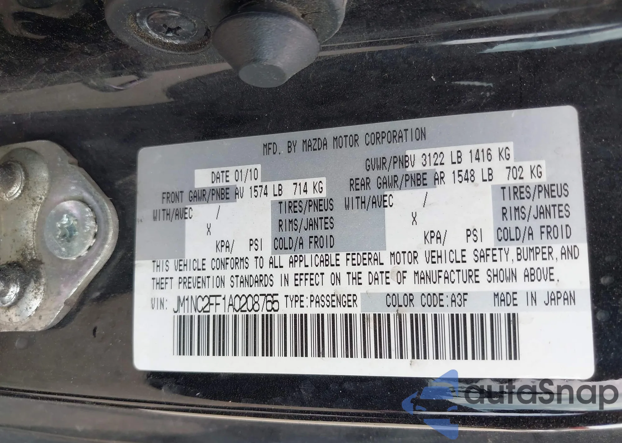 LOT: 42748620 VIN: JM1NC2FF1A0208765
