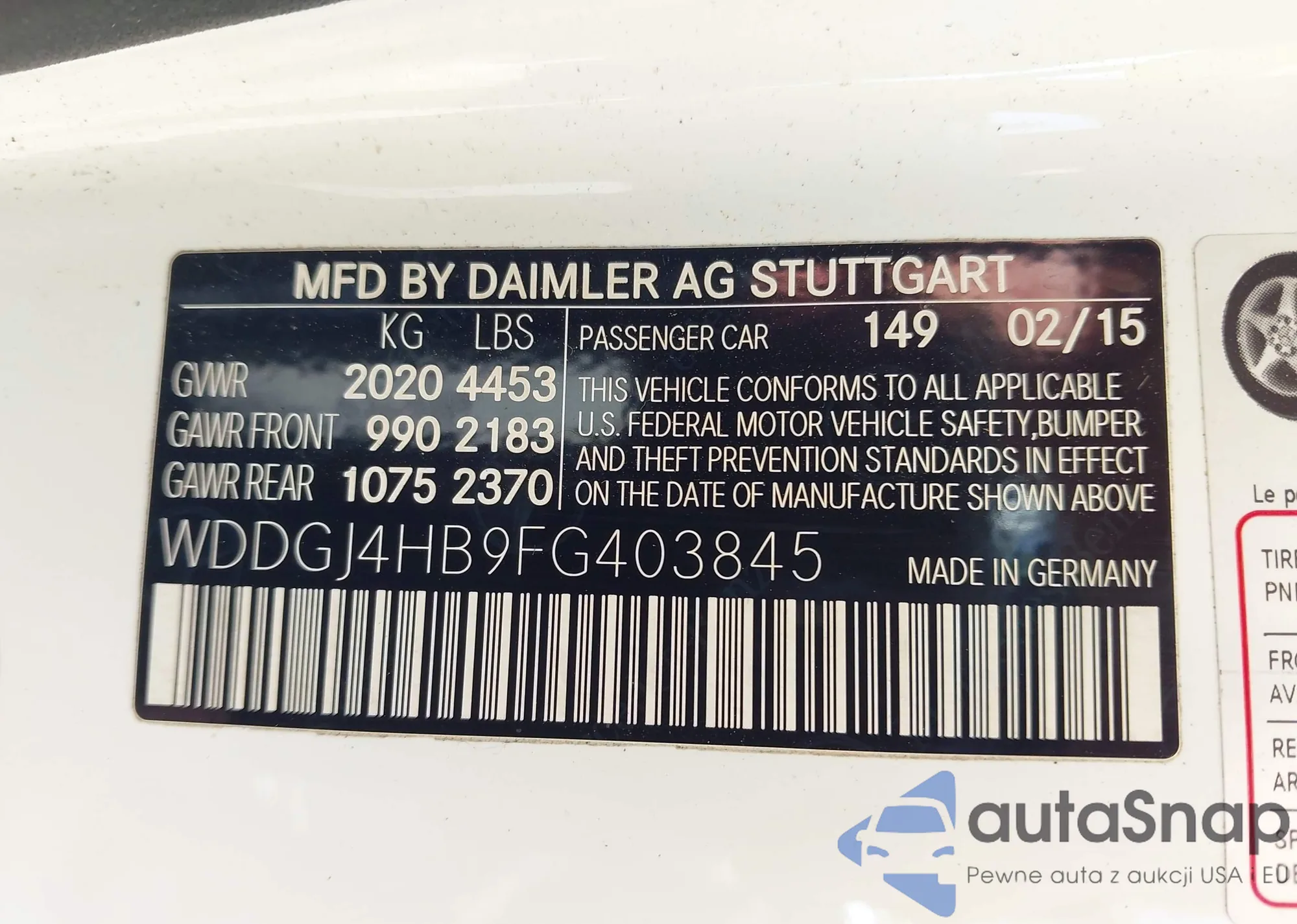 LOT: 42830268 VIN: WDDGJ4HB9FG403845