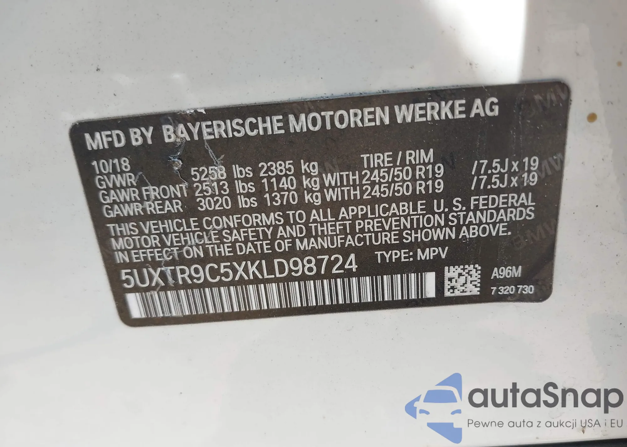 LOT: 42958068 VIN: 5UXTR9C5XKLD98724