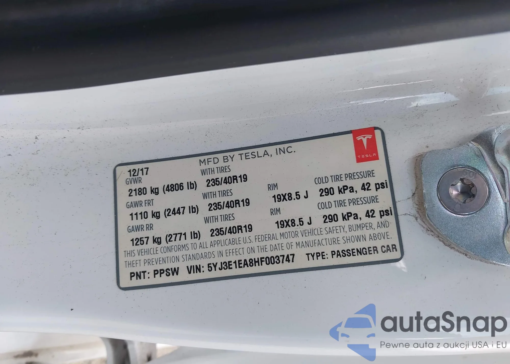 • VIN 5YJ3E1EA8HF003747