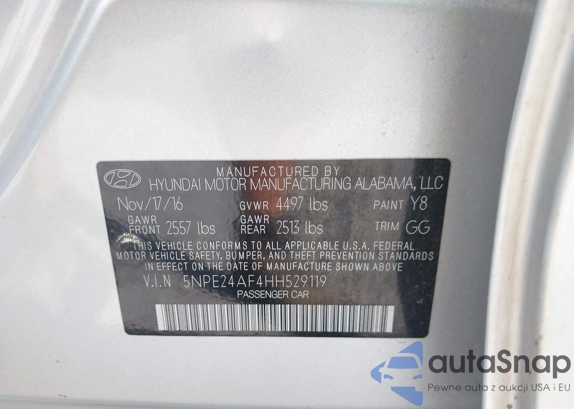 • VIN 5NPE24AF4HH529119
