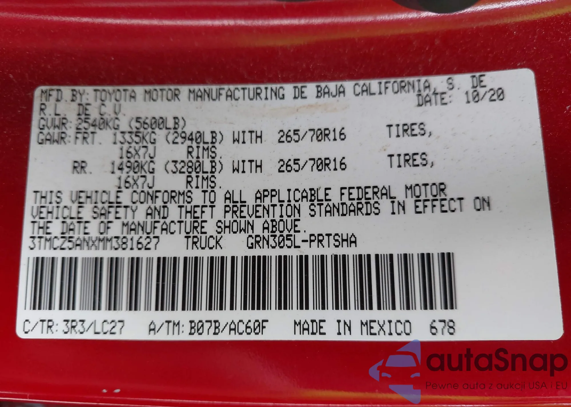 • VIN 3TMCZ5ANXMM381627
