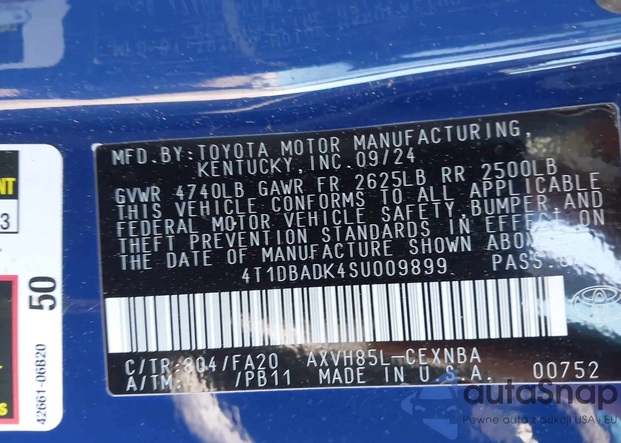 • VIN 4T1DBADK4SU009899