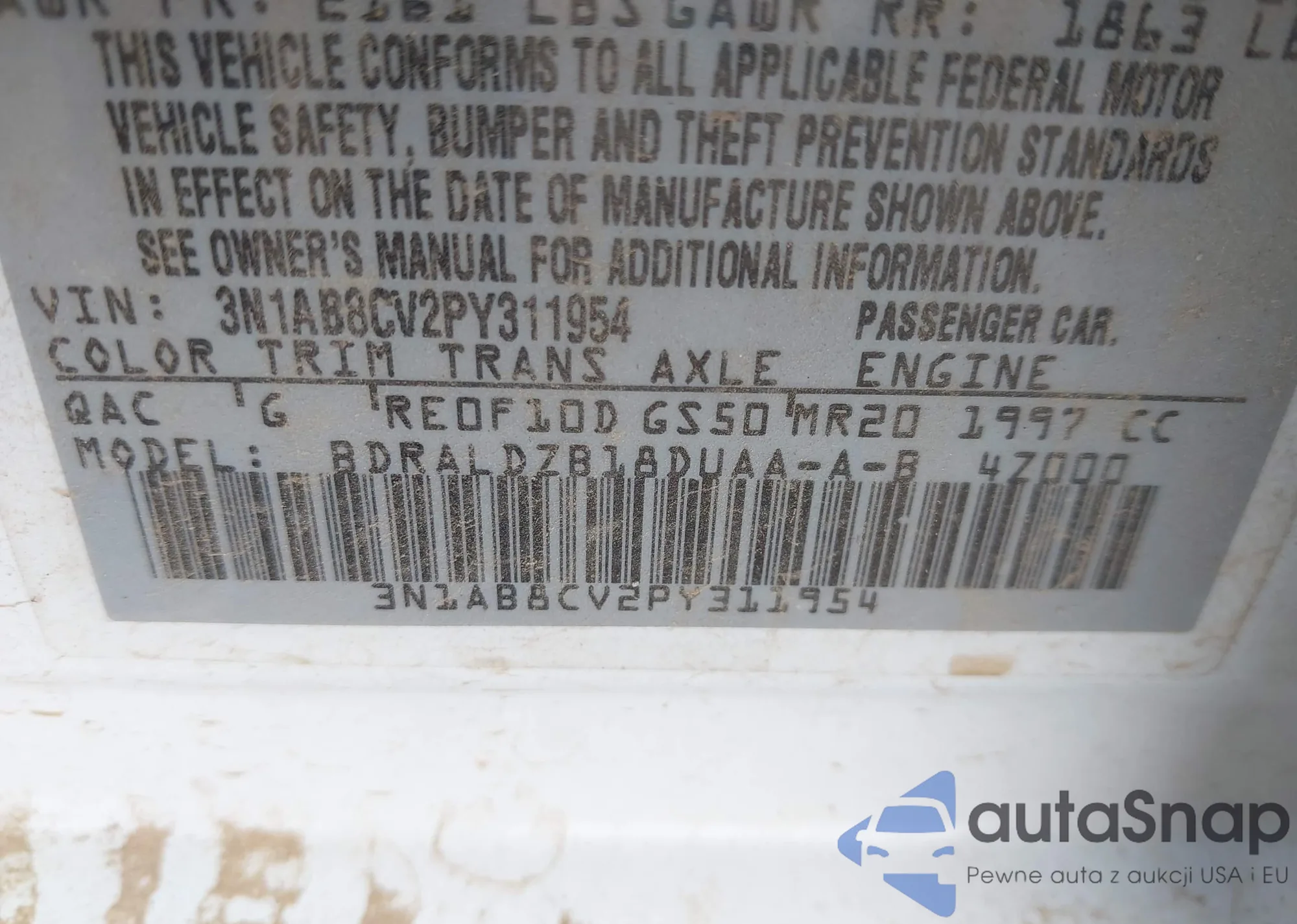• VIN 3N1AB8CV2PY311954