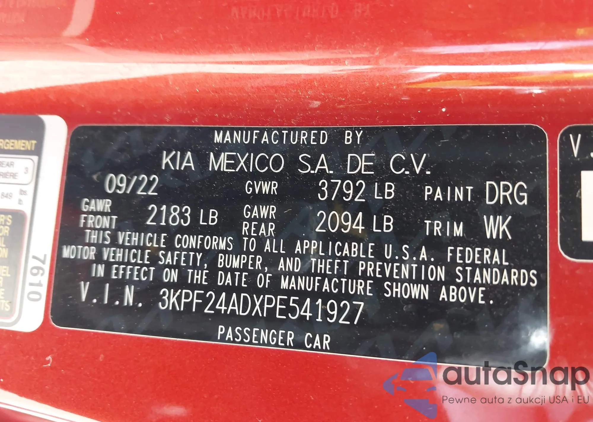 • VIN 3KPF24ADXPE541927