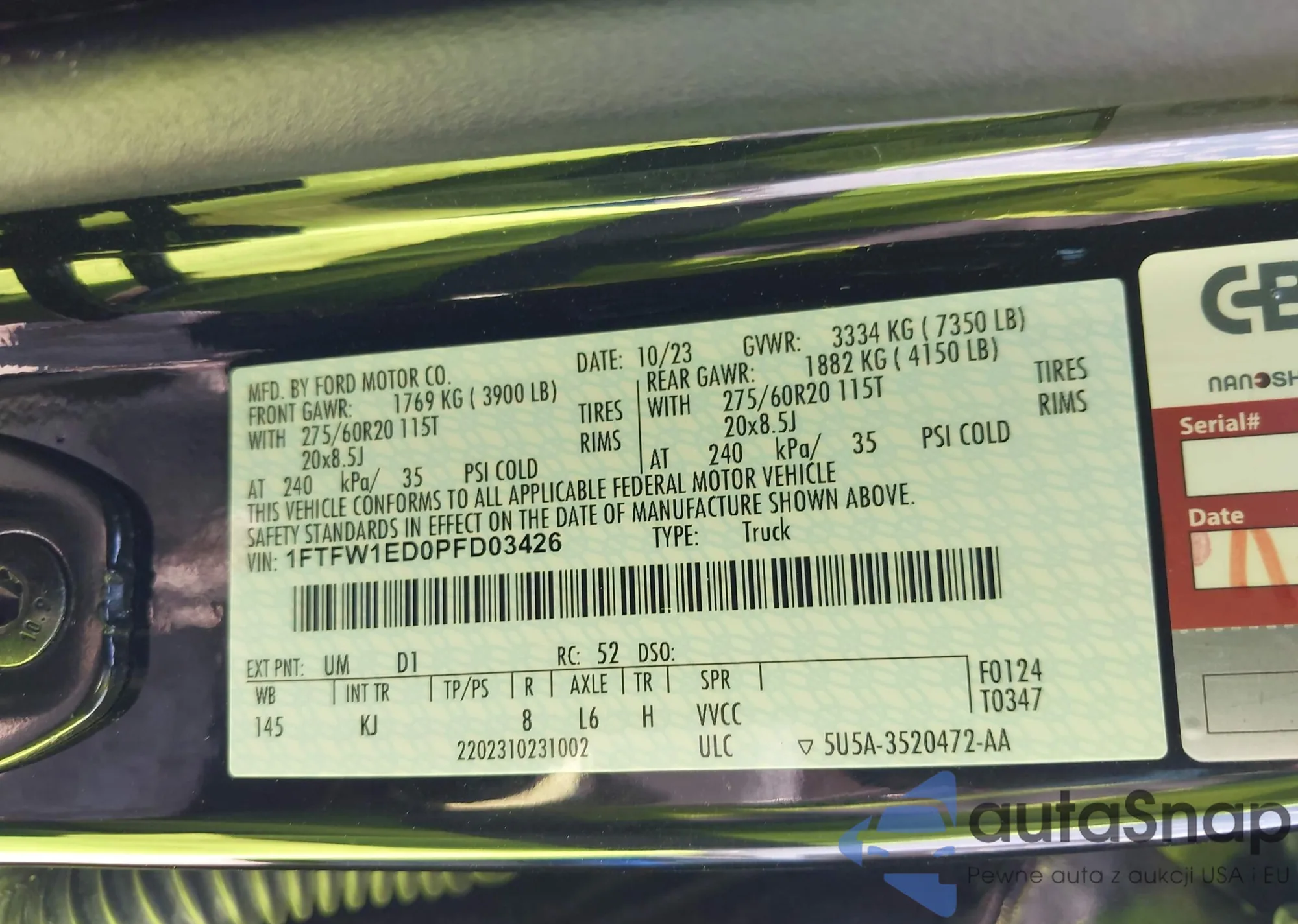 • VIN 1FTFW1ED0PFD03426
