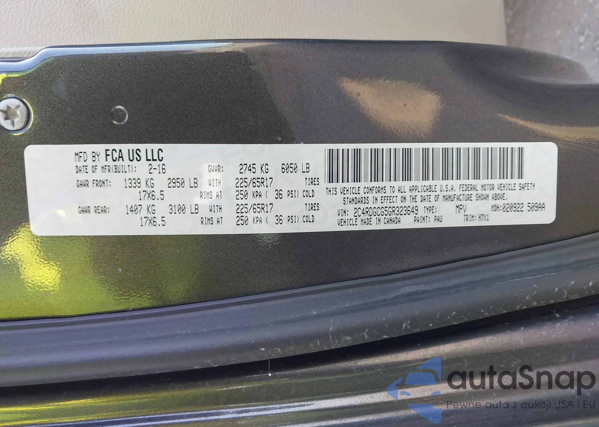 • VIN 2C4RDGCG5GR323649