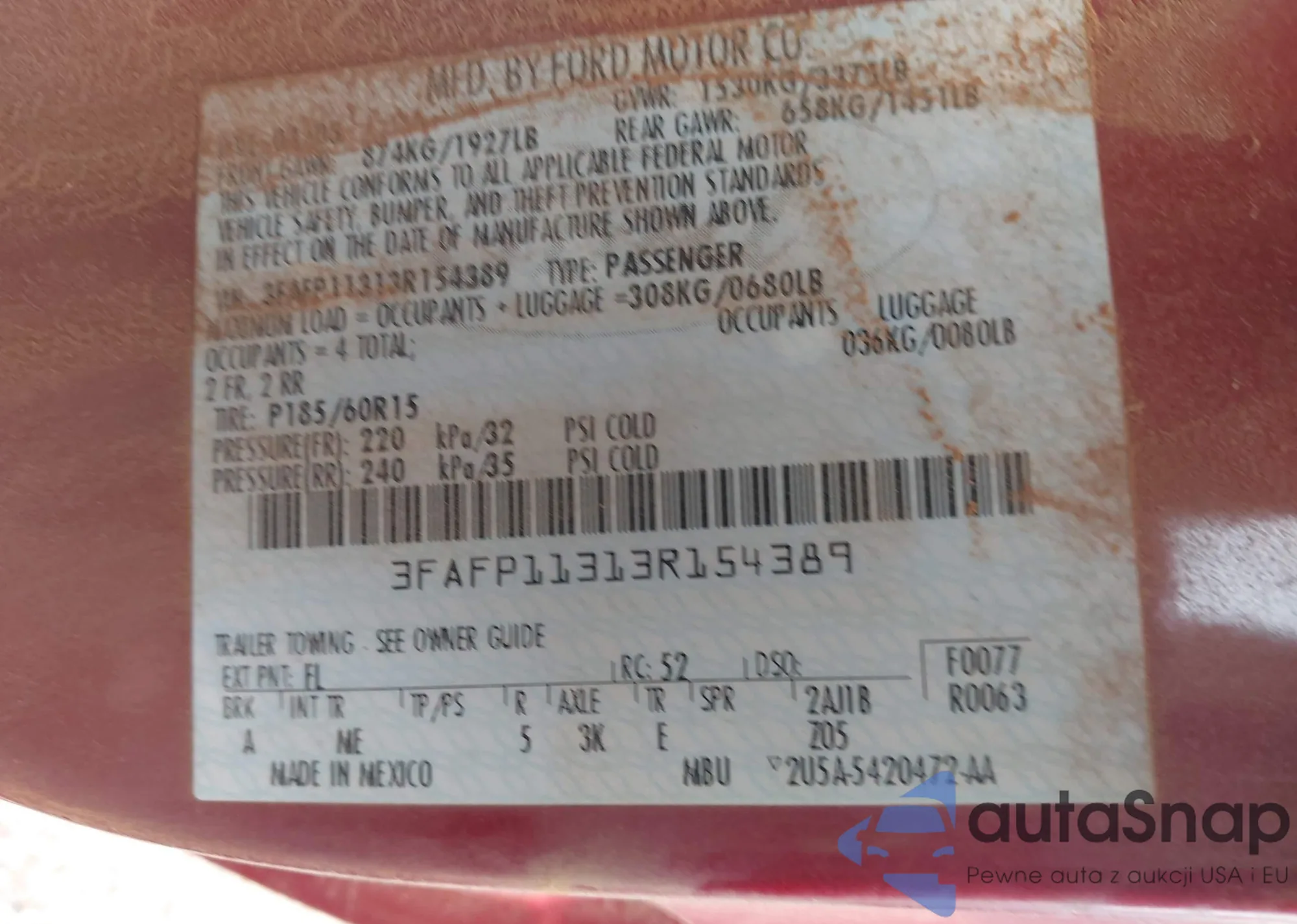 LOT: 42780645 VIN: 3FAFP11313R154389
