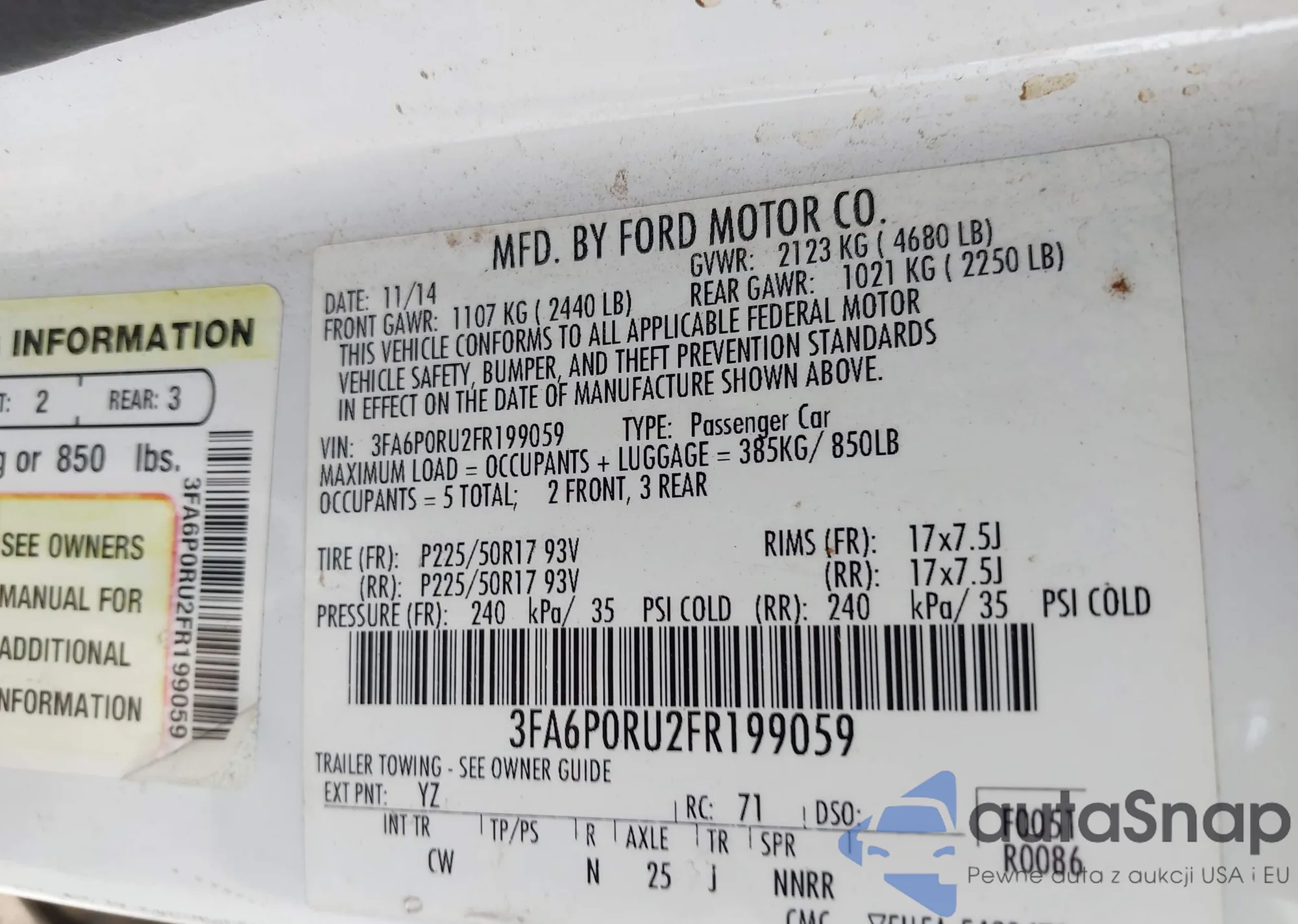 • VIN 3FA6P0RU2FR199059