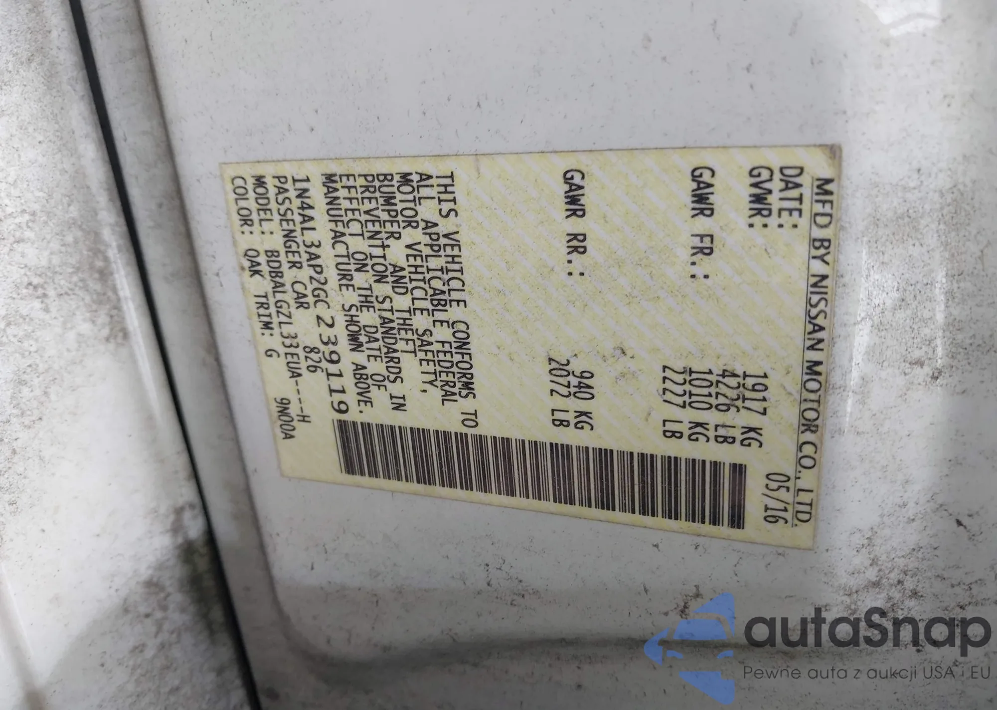 LOT: 42153418 VIN: 3N1BC1CP3AL403119