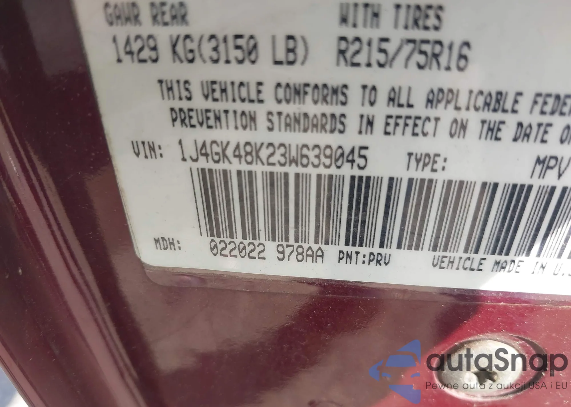 • VIN 1J4GK48K23W639045