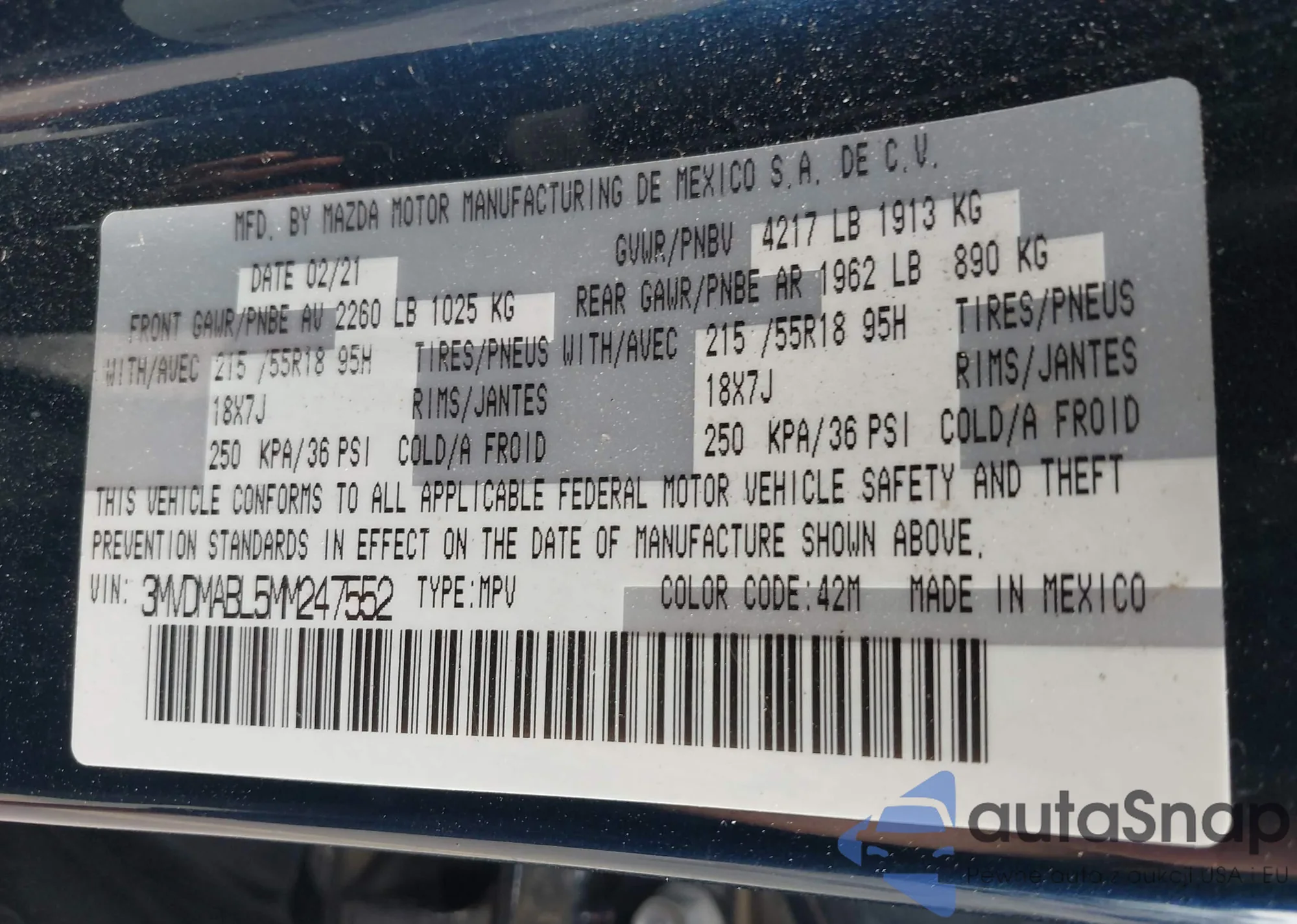 LOT: 42767433 VIN: 3MVDMABL5MM247552