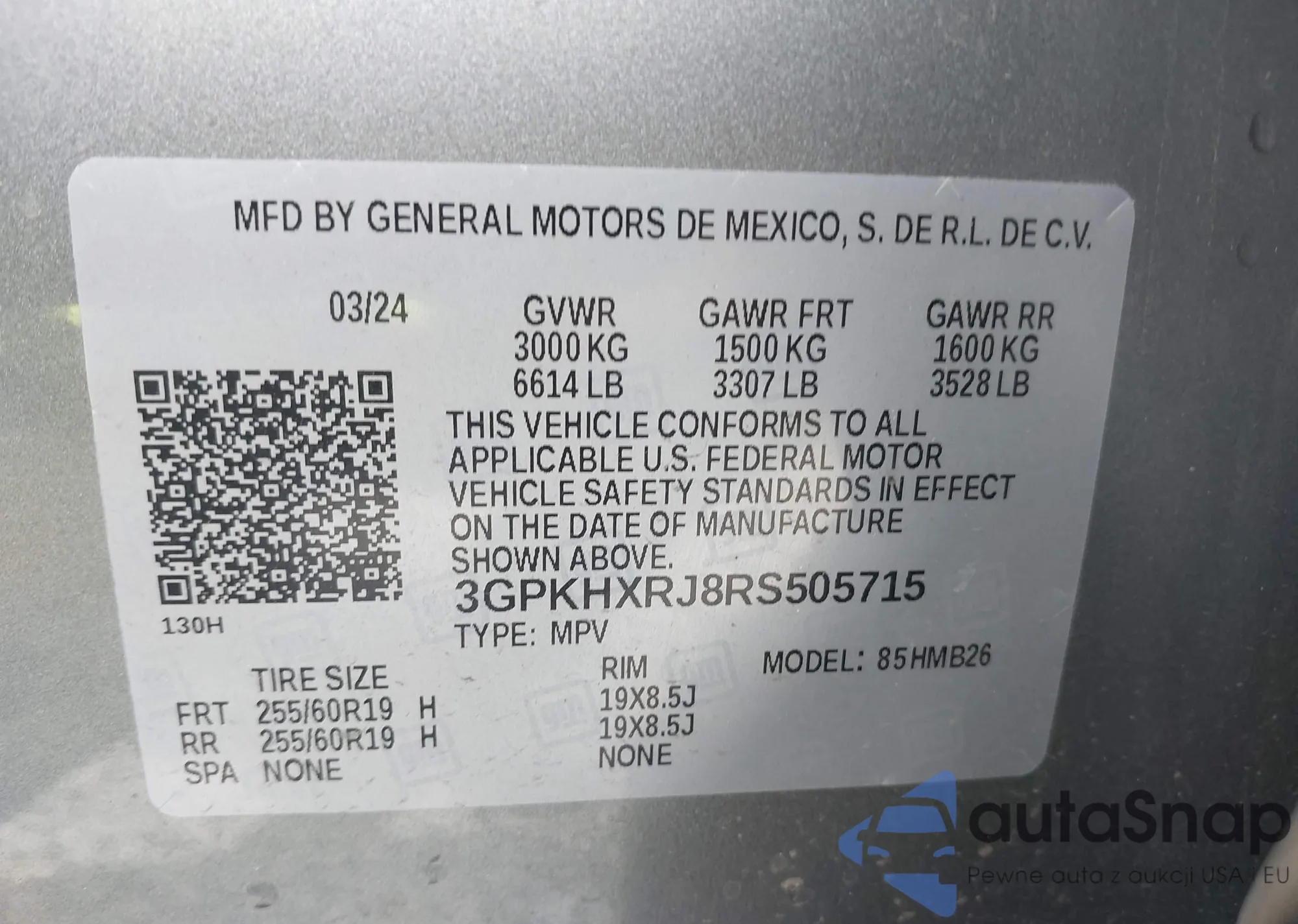 • VIN 3GPKHXRJ8RS505715