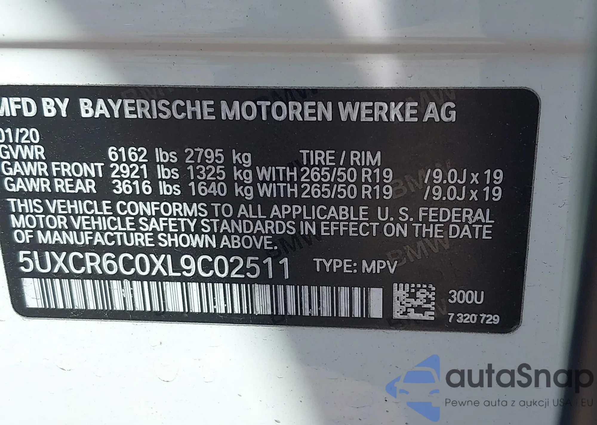 LOT: 42976529 VIN: 5UXCR6C0XL9C02511