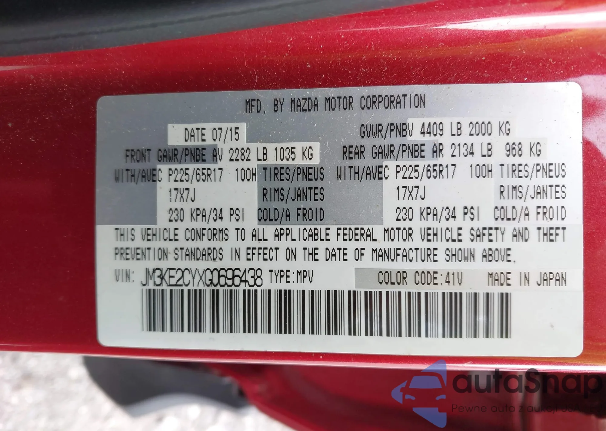 LOT: 43050138 VIN: JM3KE2CYXG0696438